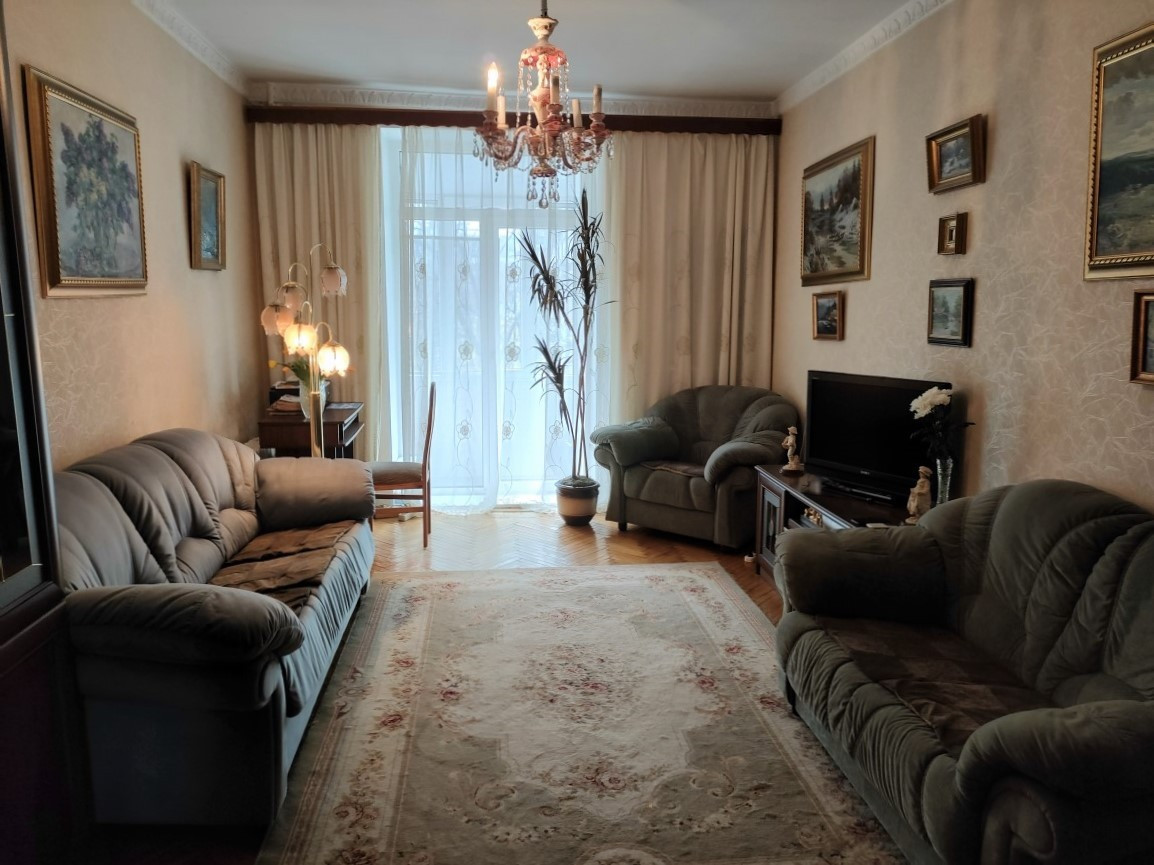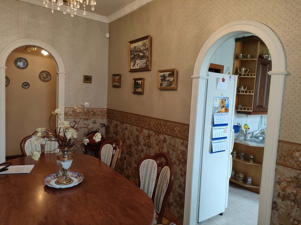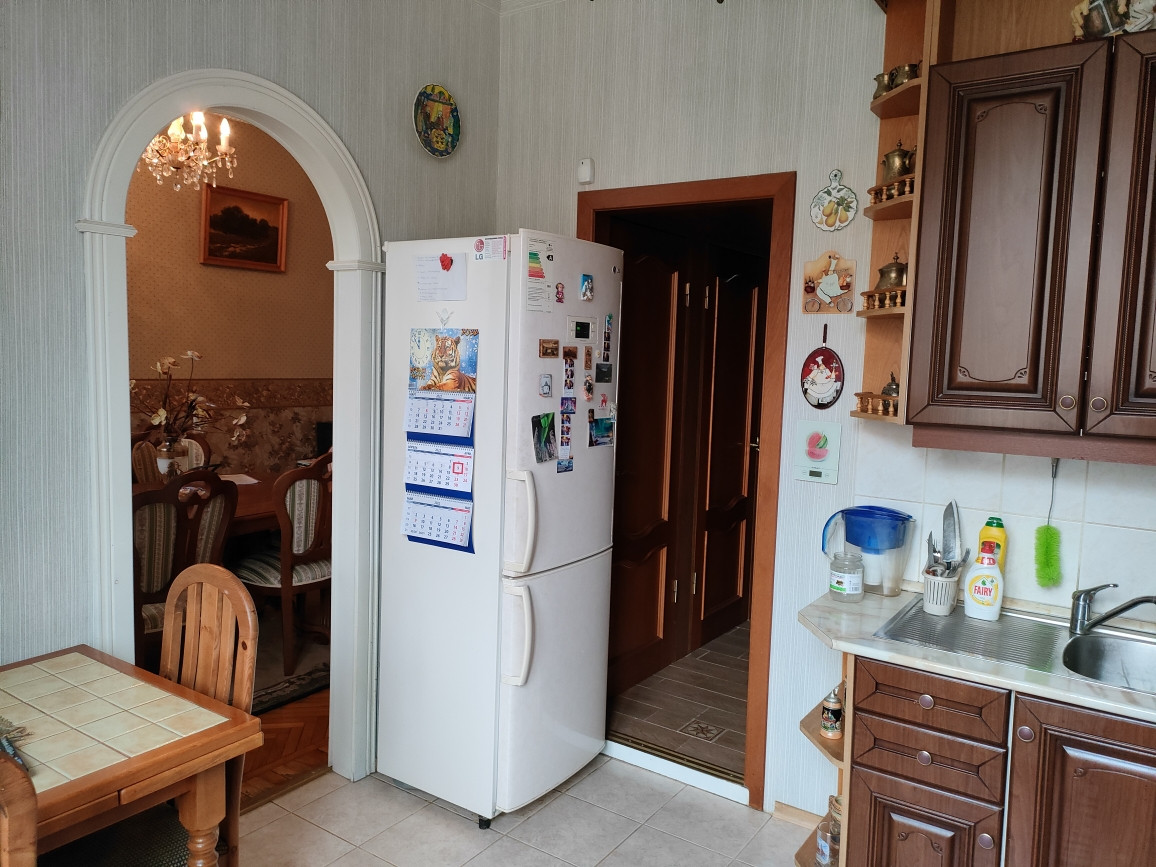 Квартира площадью 85,5 кв.м. улучшенной планировки: комнаты изолированные - 23 кв м, 17.5 кв.м. , 14 кв.м., кухня - 9 кв.м. , потолки высотой - 3,2 м, кухня и прилегающая к ней комната соединены аркой и образуют кухню-столовую площадью 23 кв. м.
