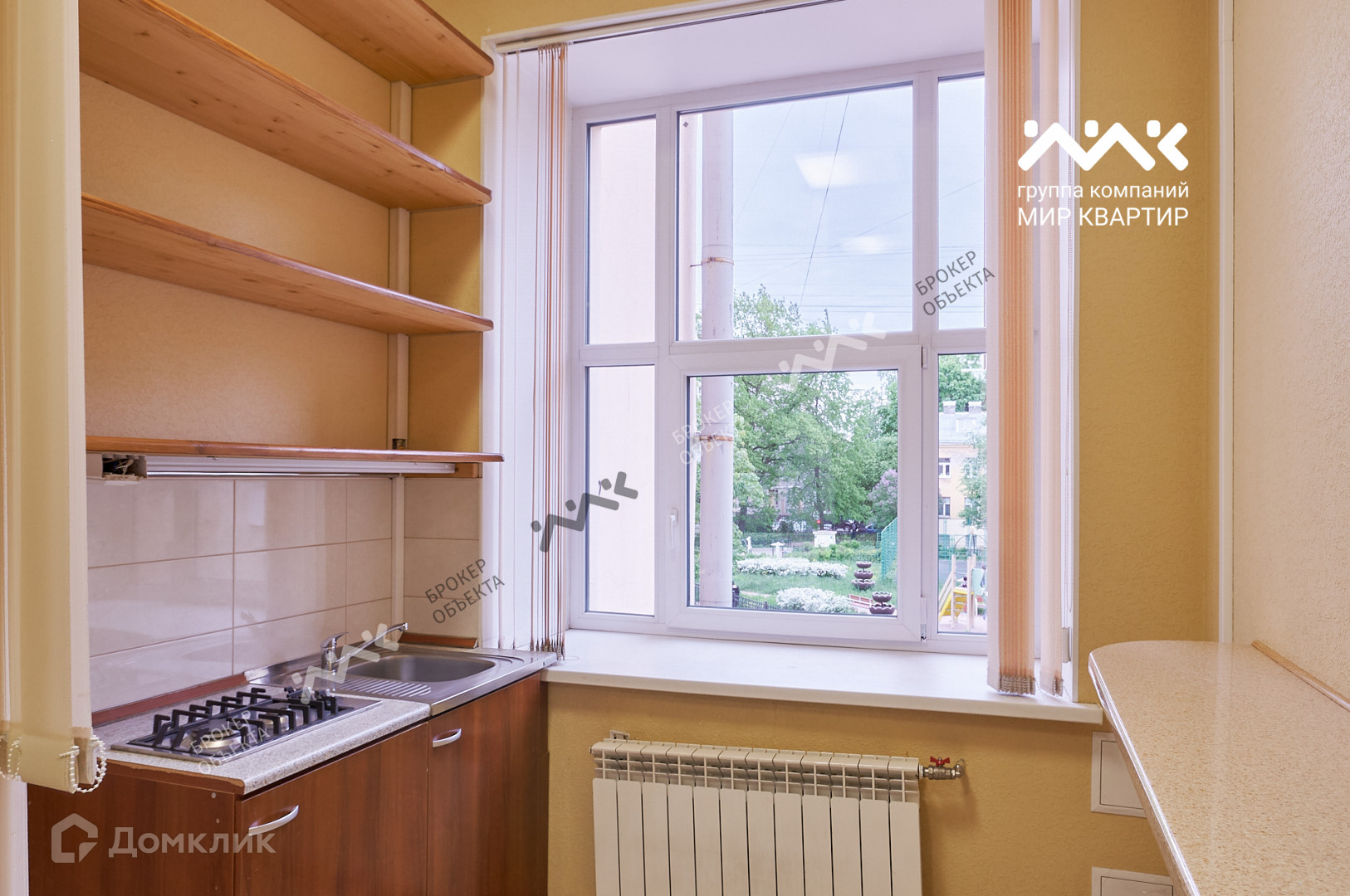 Окна трех небольших комнат и кухни смотрят в тихий уютный зеленый двор.
