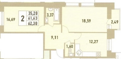 Общая площадь 62 м2