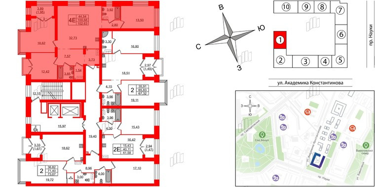 3-комнатная квартира, 102 м2, этаж 9 / 13, на продажу в Санкт-Петербурге, улица Академика Константинова, 1к2