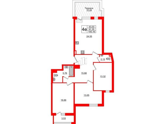 3-комнатная квартира, 106 м2, этаж 10 / 10, на продажу в Санкт-Петербурге, Курляндская улица, 10-12