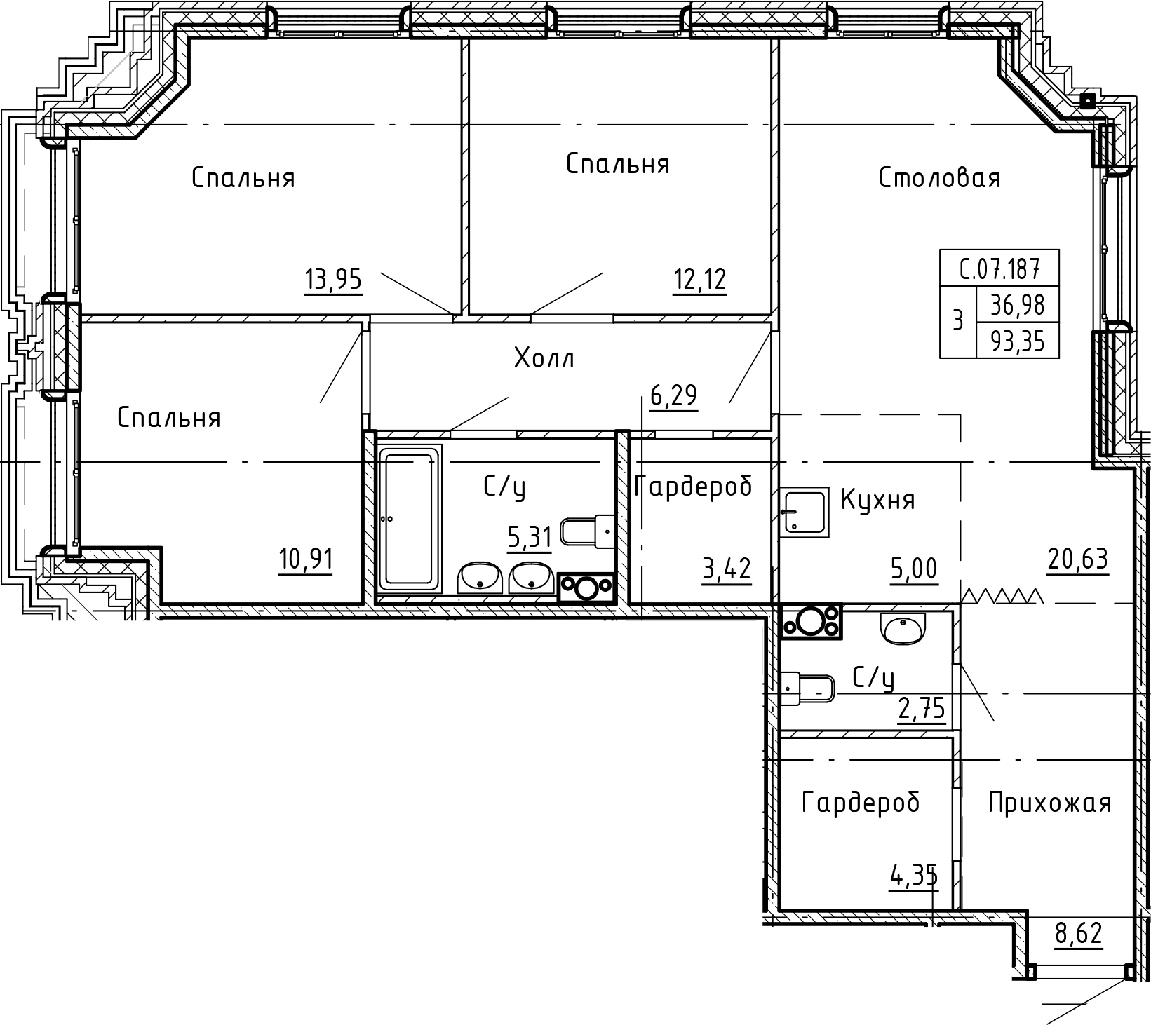 Общая площадь 94 м2