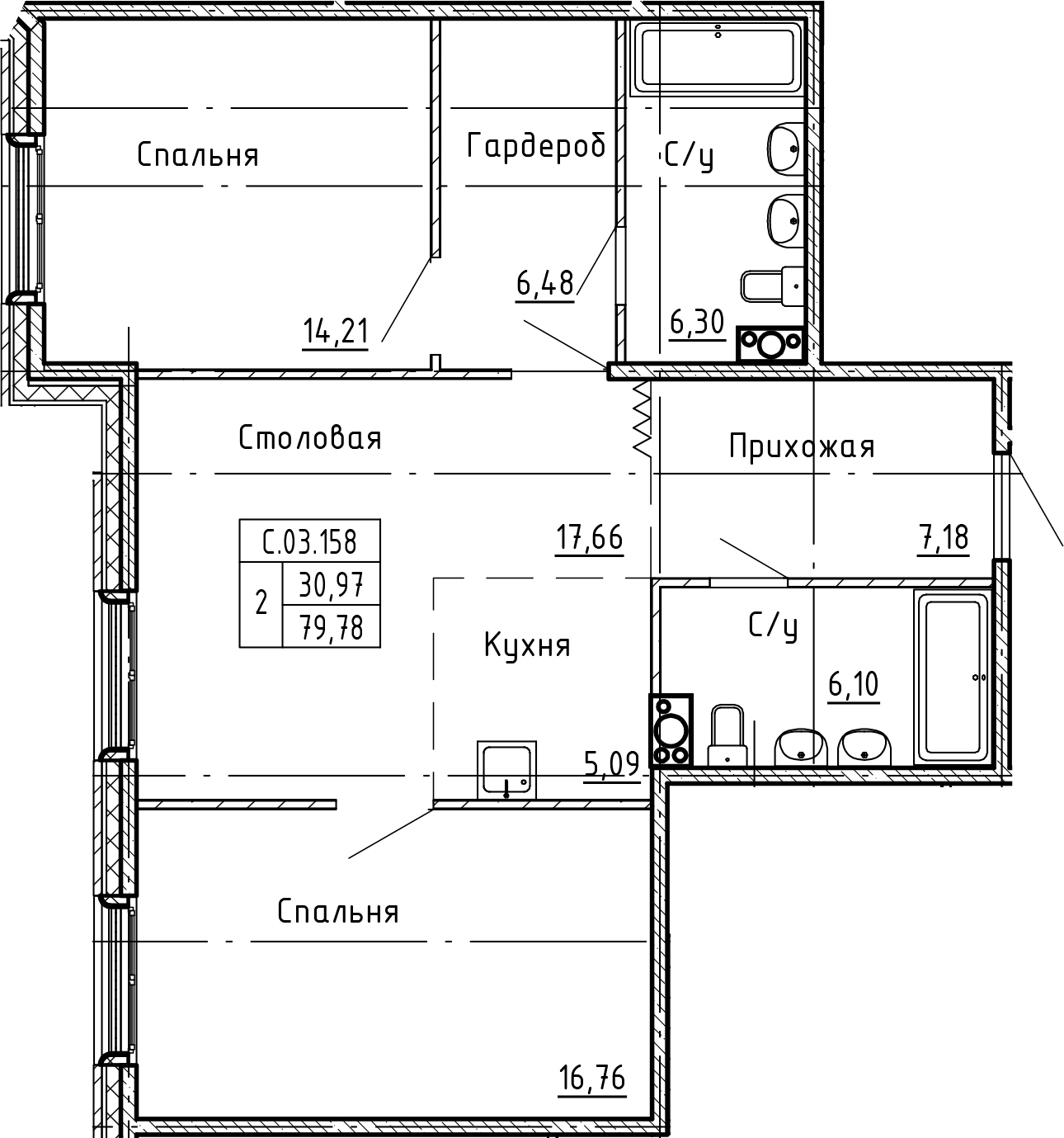 Общая площадь 80 м2