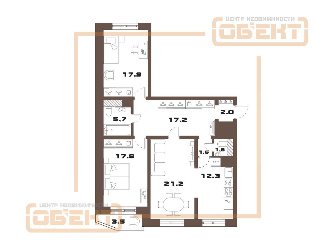 Общая площадь 101 м2