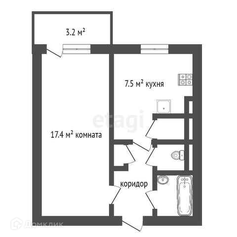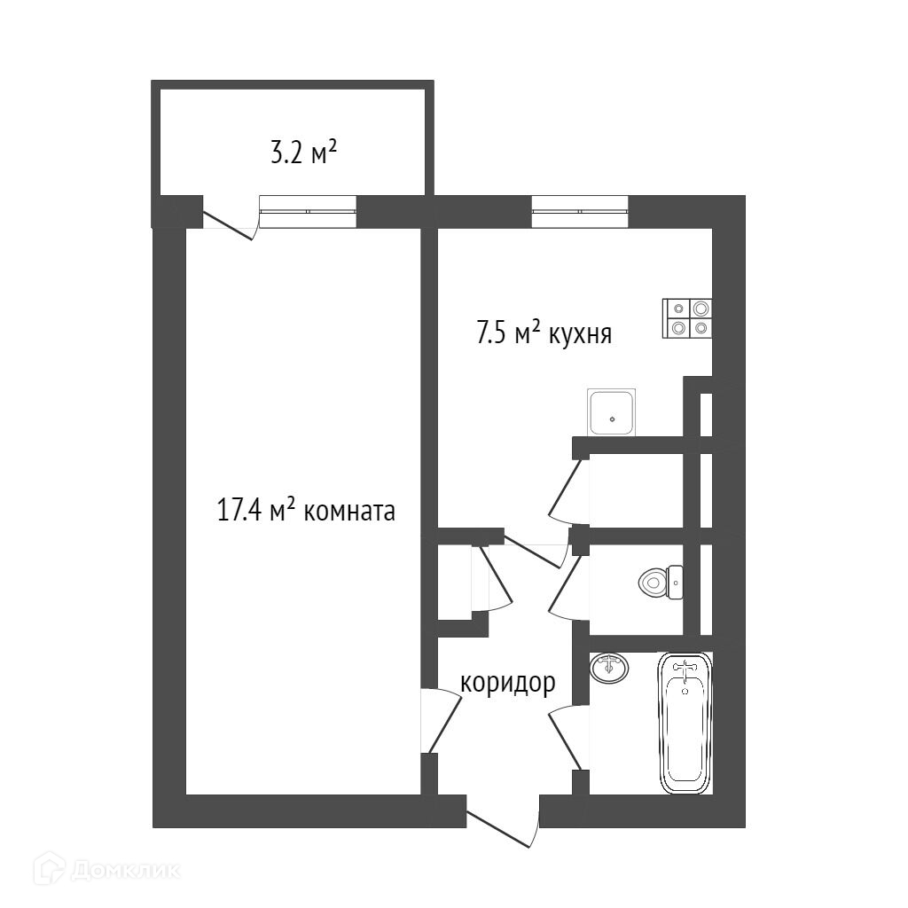 Общая площадь 32.6 м2