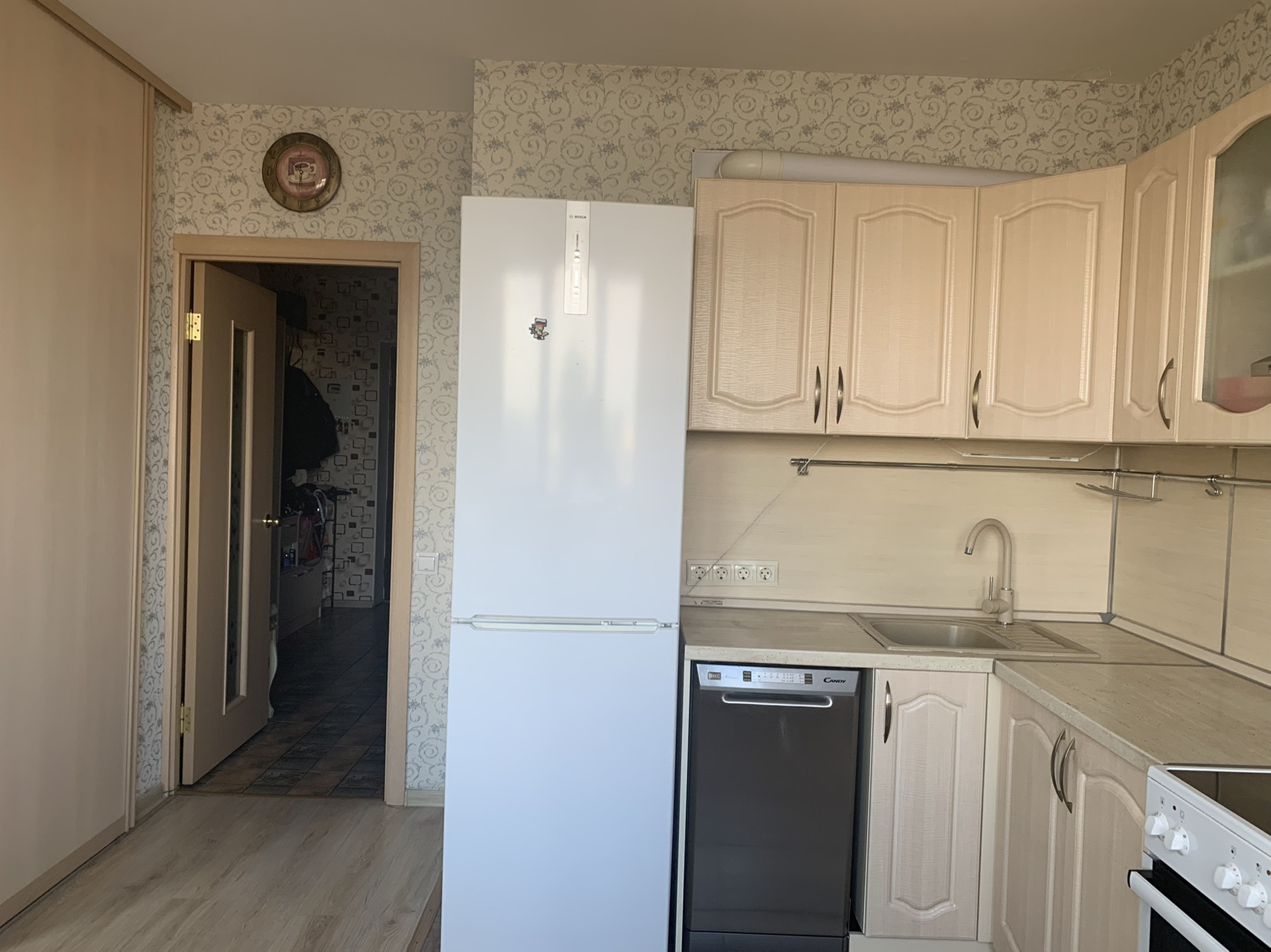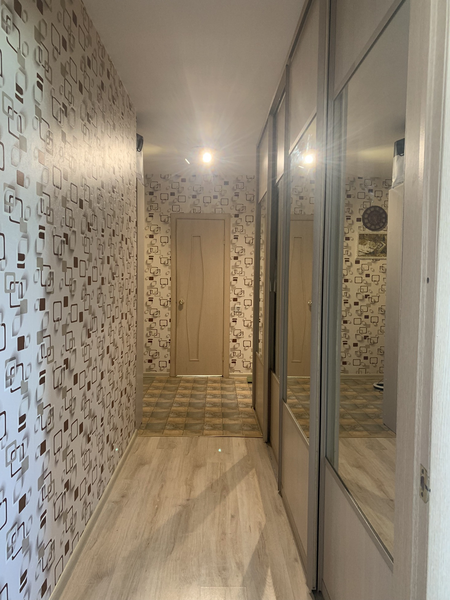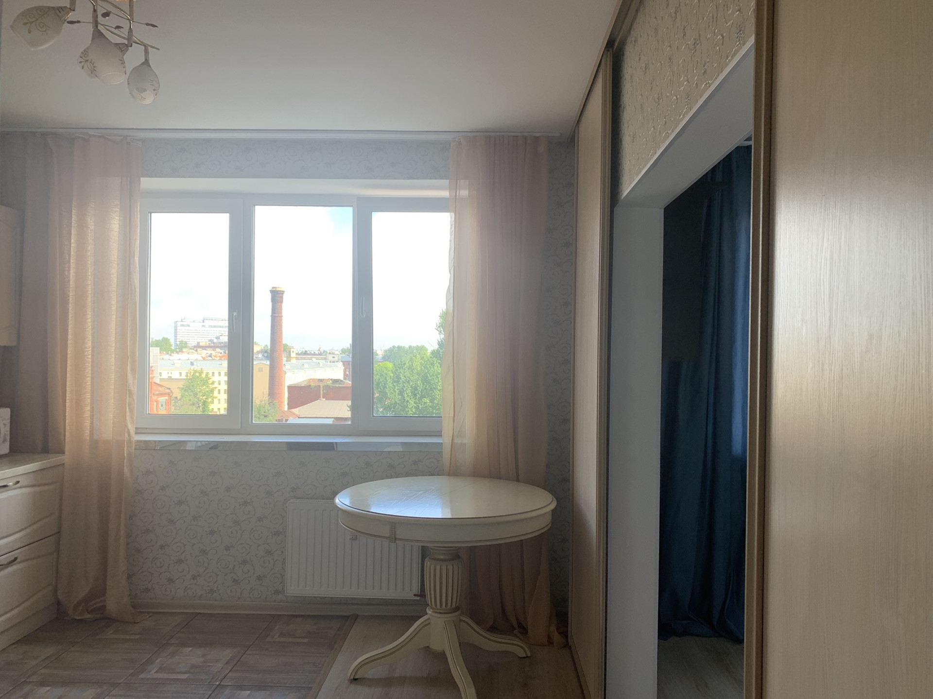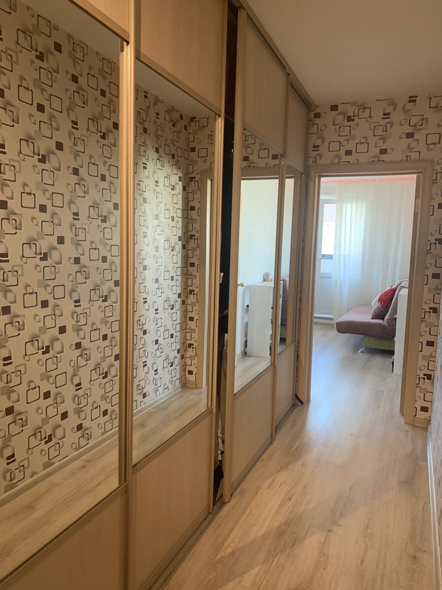 В квартире сделана эргономичная перепланировка, кухня отделена от комнаты раздвижными дверьми-купе