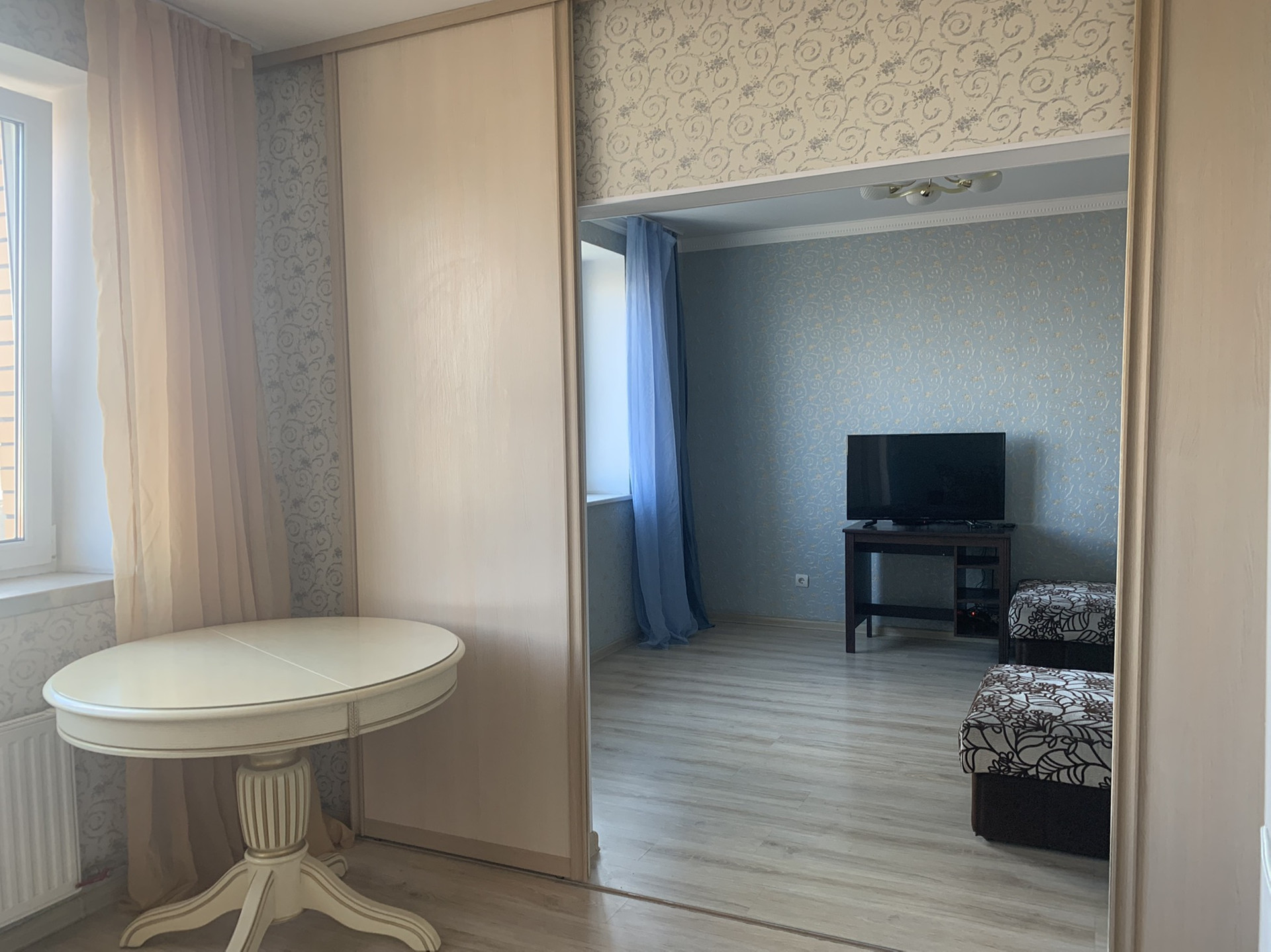 Просторная прихожая со шкафом-купе, гостиная с комнатой, раздельный санузел, ванная и душевая кабина, гардеробная, лоджия