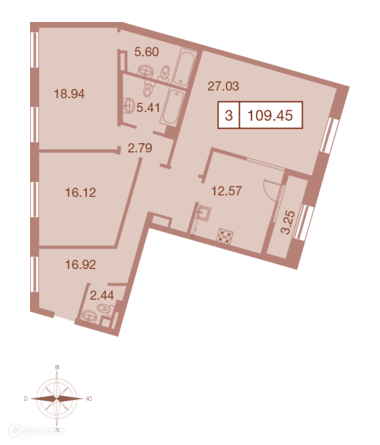 Общая площадь 109.3 м2