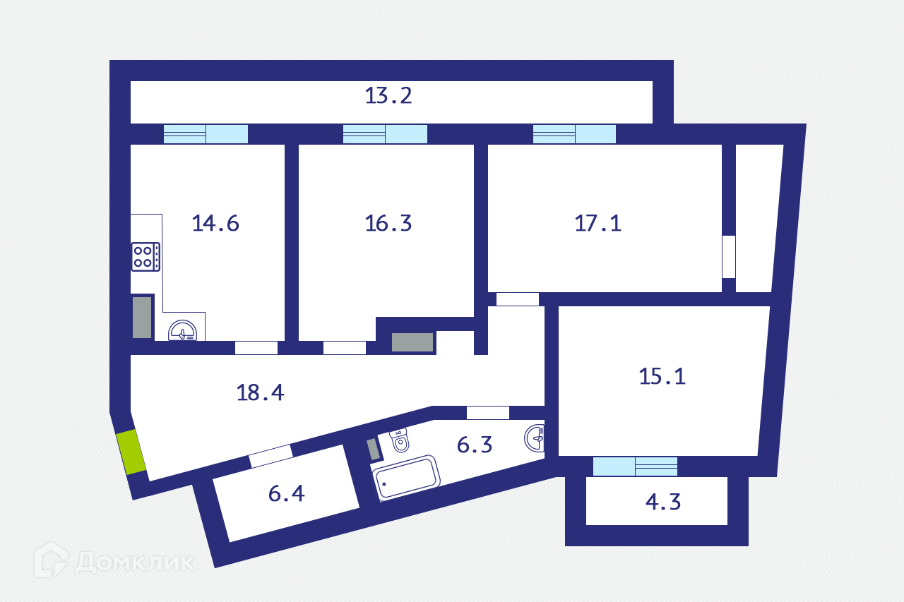 3-комнатная квартира, 94.2 м2, этаж 8 / 8, на продажу в Санкт-Петербурге, улица Моисеенко, 27