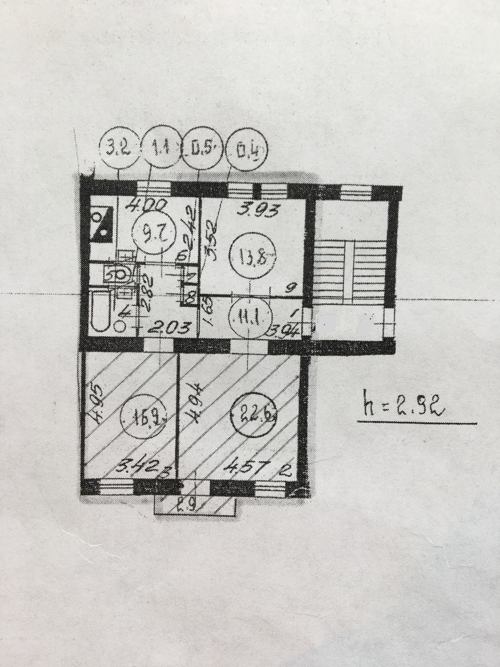 Высота потолков 2.92 м