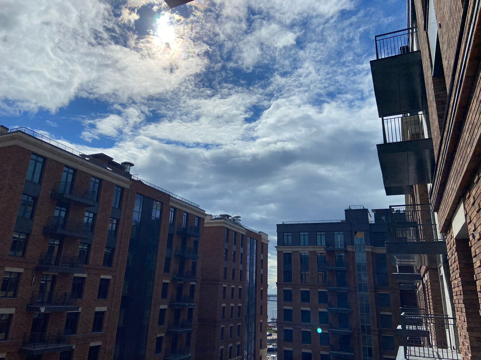 У комплекса закрытая территория, видеонаблюдение, подземный паркинг (можно спуститься в паркинг на лифте из парадной), во дворе детские и спортивные площадки, зоны отдыха и прогулочные места, выход к воде с территории дома.