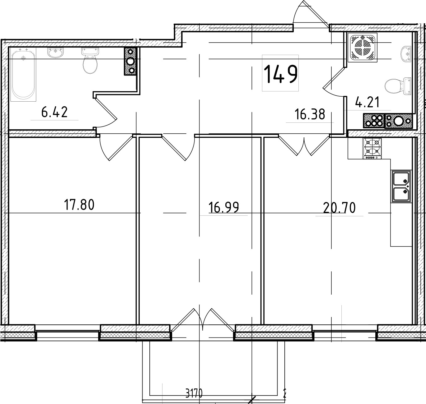 Высота потолков 3 м