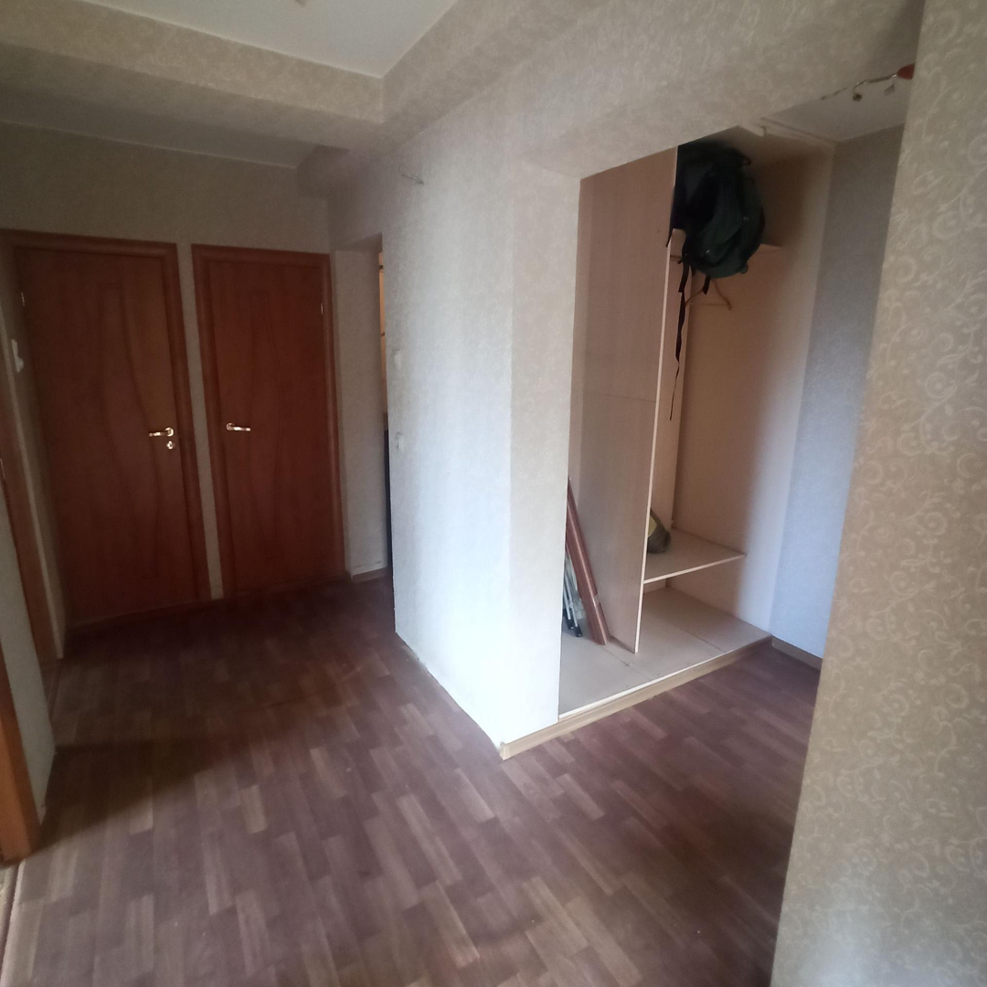 Квартира трёхсторонняя, свободна от мебели, приватизирована.  Сделан частичный ремонт: стеклопакеты, двери в коридоре натяжной потолок, лоджия застеклённая большая. Во второй подъезд с задней стороны дома оборудована специальная подъёмная площадка для инвалидов. В качестве альтернативы рассматриваем двушку в новых домах. Рядом с туалетом находится кладовка. Всё необходимое для комфортного проживания находится в непосредственной близости от дома по дороге к метро. Встречка подобрана в новом доме.
