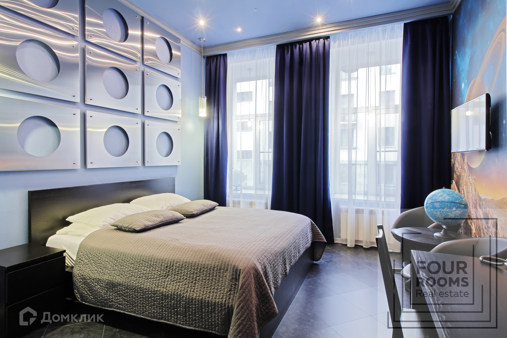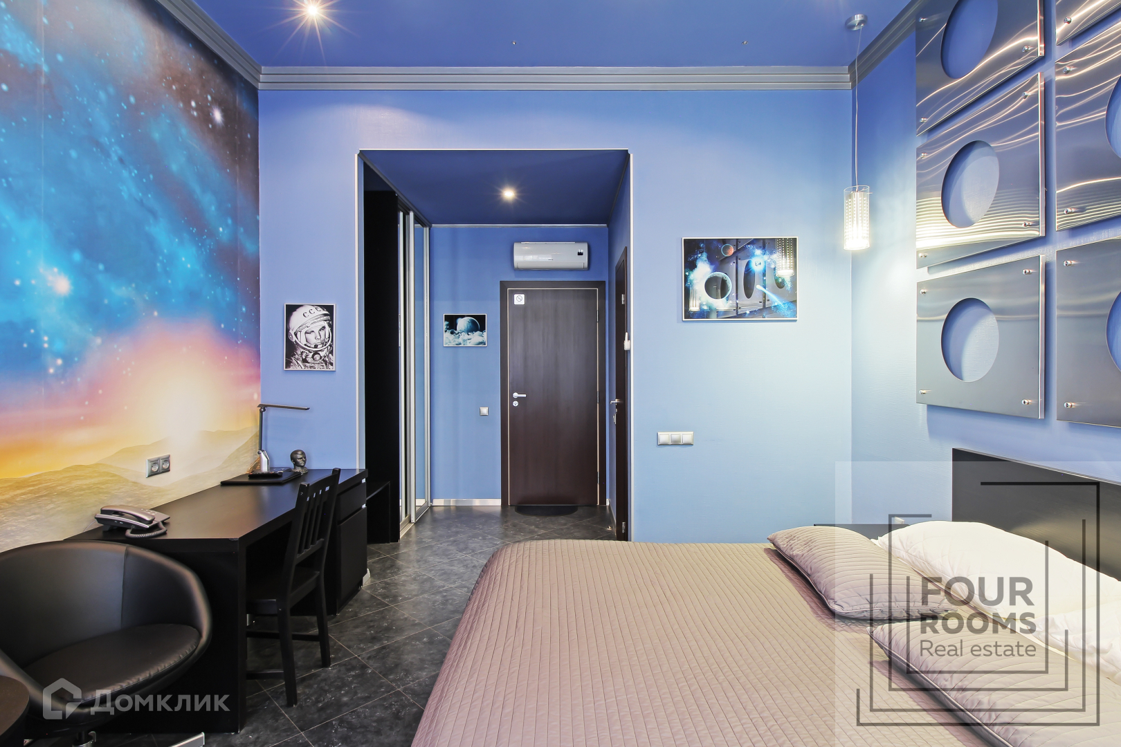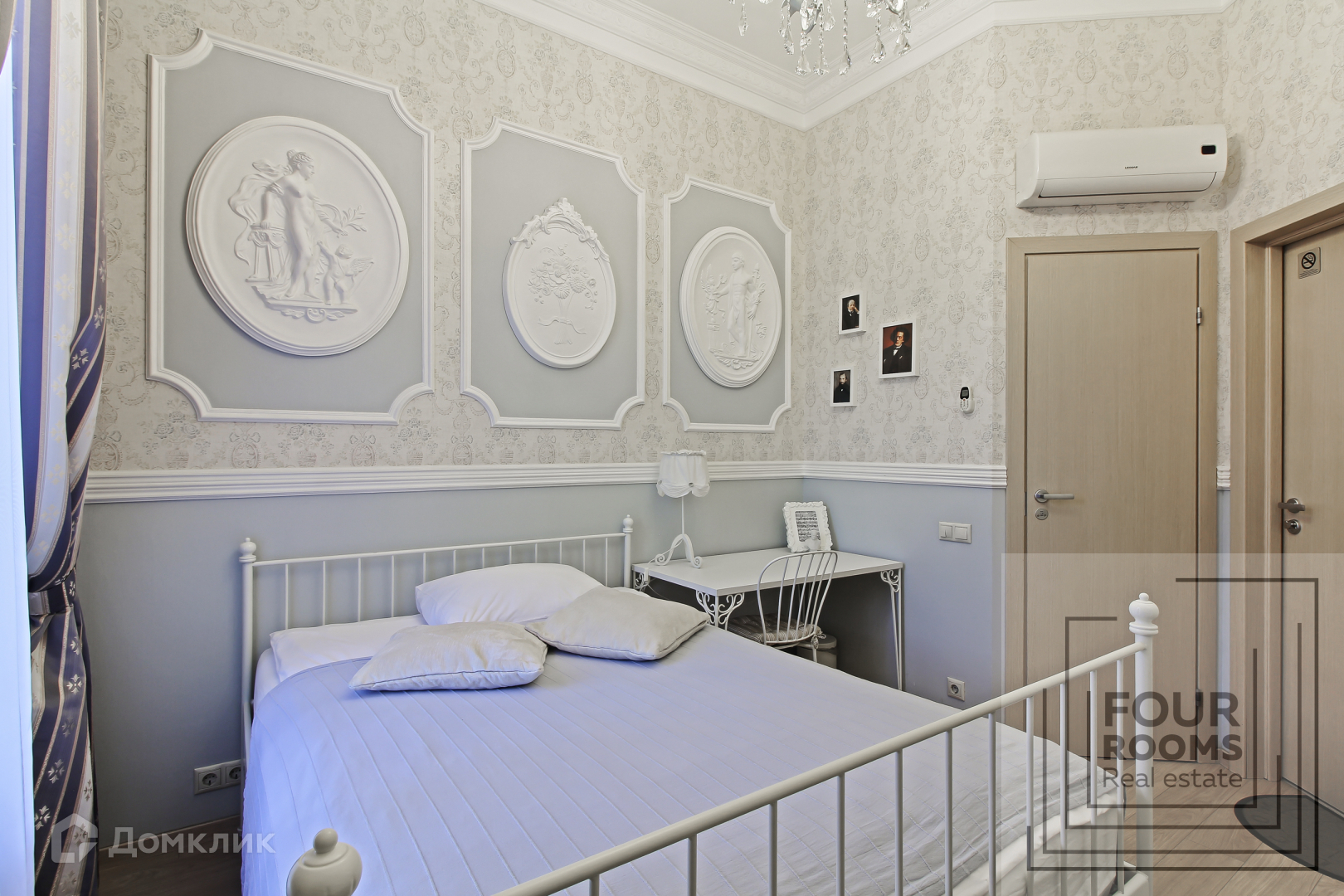 Квартира двусторонняя, состоит из просторной кухни, оборудованной всем необходимым,  шести комнат с санузлами и душевыми, прачечной и широкой прихожей.