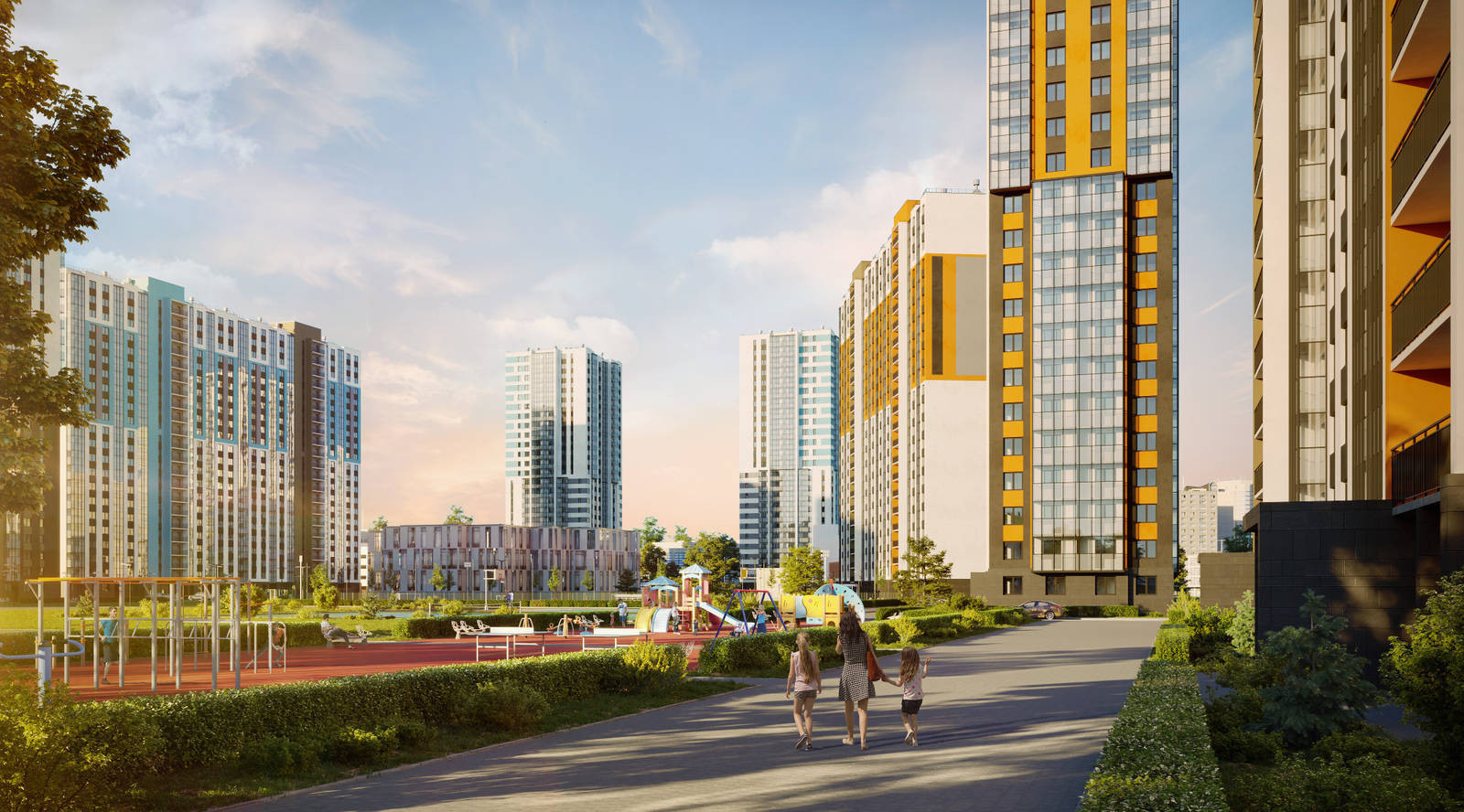 Дома комплекса имеют различную этажность (18-25 этажей) и включают в себя 1-, 2-, 3-комнатные квартиры с чистовой отделкой. Для автомобилей предусмотрена встроенно-пристроенная парковка.