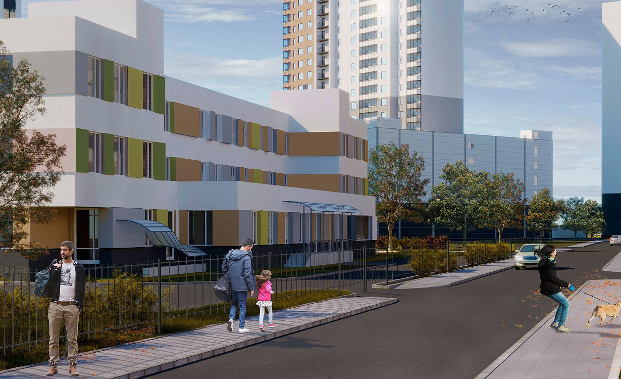Проектом благоустройства предусмотрено обустройство в дворах детских и спортивных площадок. Помимо традиционных работ по озеленению прилегающей территории домов, будет благоустроен берег реки Охты, он превратится в зеленую зону для отдыха и прогулок.