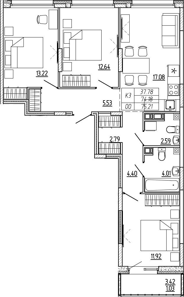 Общая площадь 75 м2