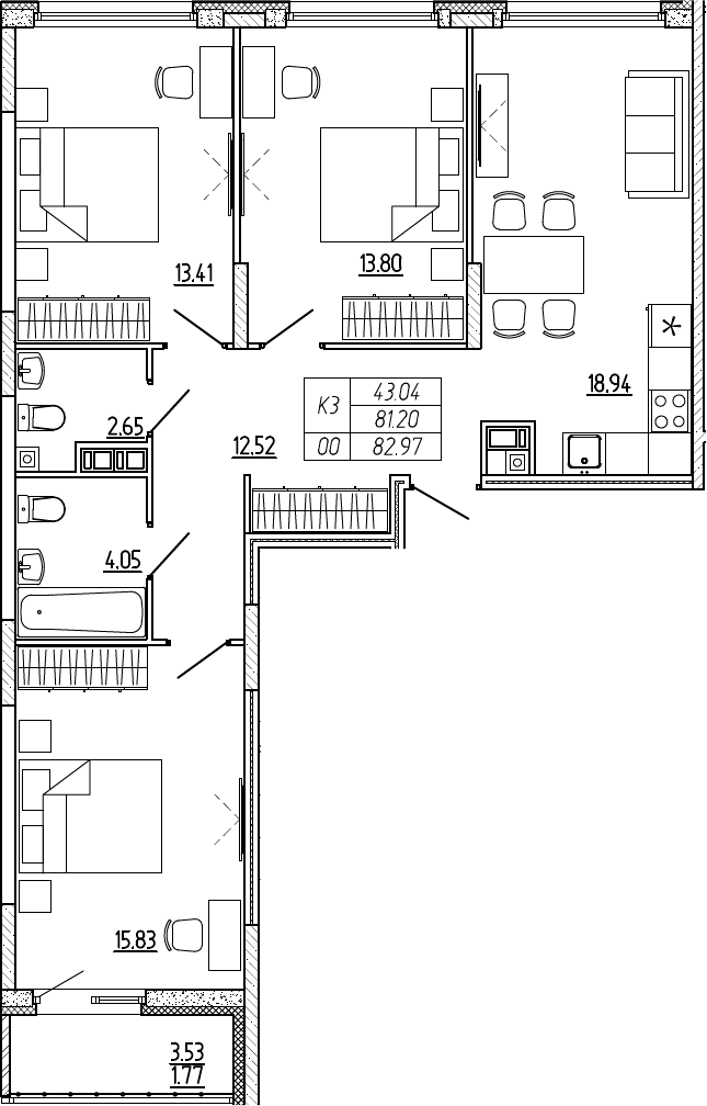 Общая площадь 82.9 м2