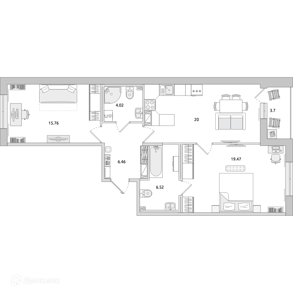 Площадь кухни 20 м2