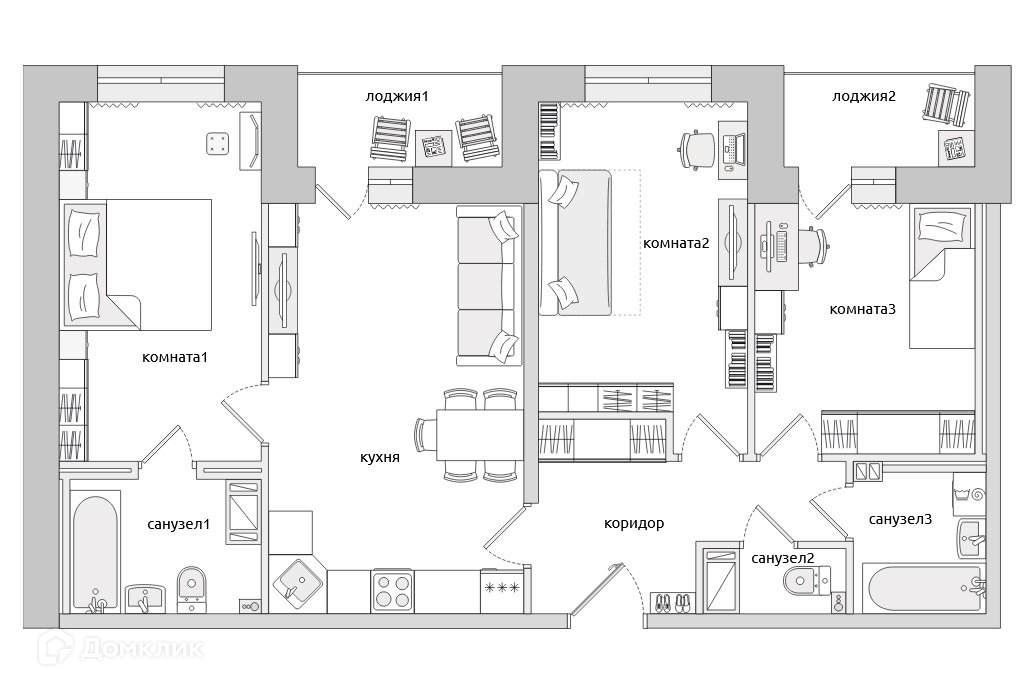 Кухня-гостиная 20,5 метров, мастер-спальня с санузлом, две застекленные лоджии. Всего три санузла в квартире.