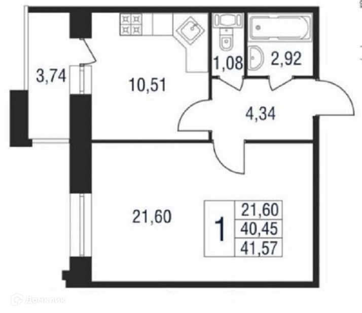 Общая площадь 41 м2