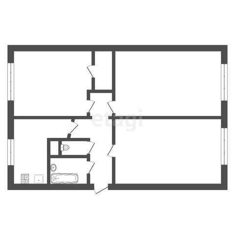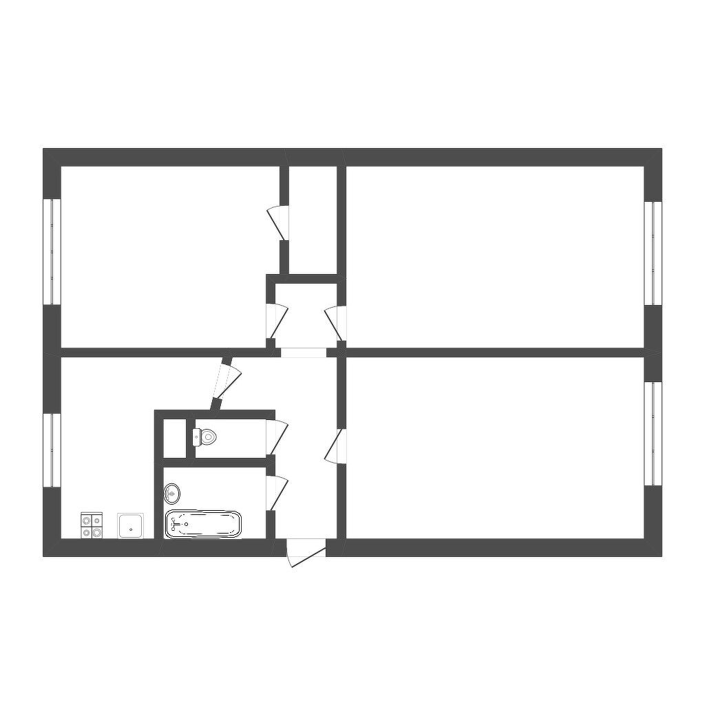 Площадь квартиры 62,2 метра. Три изолированные комнаты 17, 18 и 12 метров. Кухня 7 метров. Раздельный санузел. Имеется вместительная гардеробная. Окна кухни и одной из комнат выходят во двор.