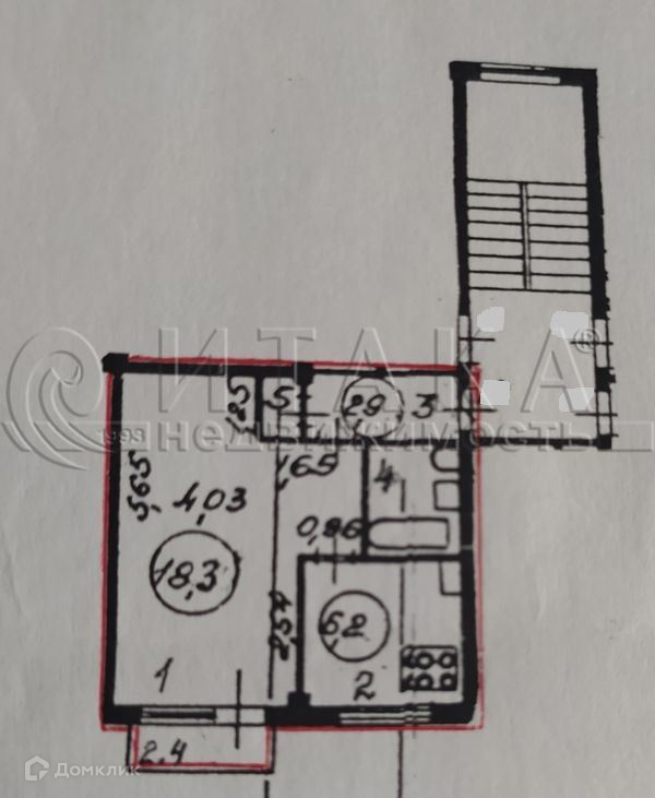 1-комнатная квартира, 31 м2, этаж 3 / 5, на продажу в Санкт-Петербурге, Брюсовская улица, 11