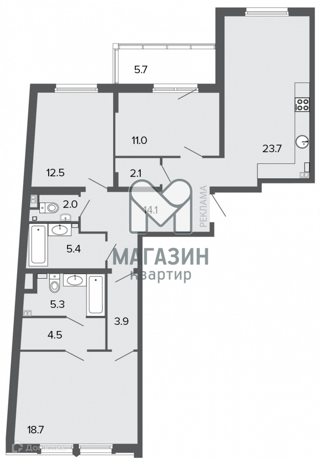- 2 Ванные комнаты по 5,5 м2