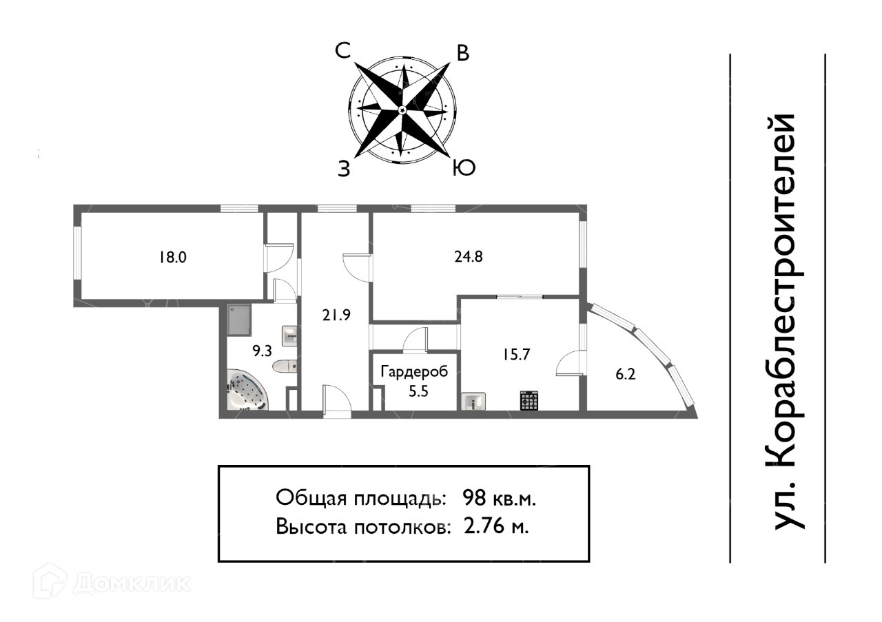 Общая площадь 98 м2