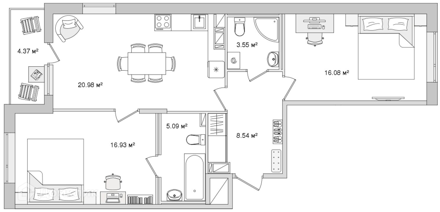 Просторная двухкомнатная квартира в строящемся доме ЖК «Черная Речка». Большая кухня-гостиная станет уютным местом встречи всей семьи для построения планов на будущее, местом для посиделок с друзьями. Дополнить спальню можно небольшим рабочим уголком. А детскую спланировать так, чтобы в ней было достаточного пространства для сна, игр и творчества. Для удобства в комнатах предусмотрены ниши для хранения вещей. Идеальный выбор для семьи, где каждый будет иметь свой уголок, чувствовать себя уютно. ЖК расположен в Приморском районе города на Белоостровской ул.