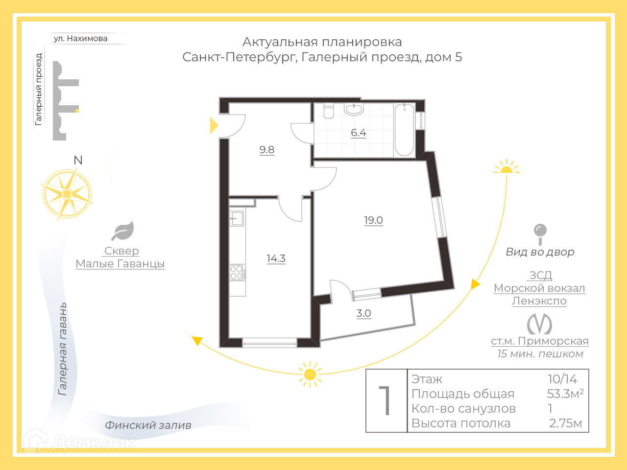 Светлая просторная квартира 53 кв. м находится на 10 этаже 14-этажного кирпичного дома , из окон открывается перспектива в открытый благоустроенный двор.