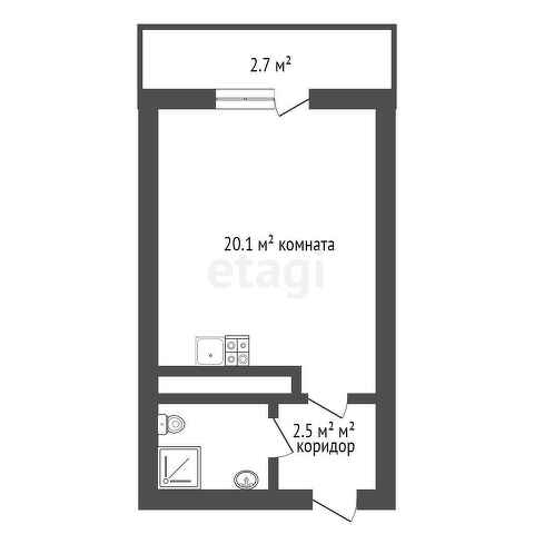 - Площадь студии 25,3 м2