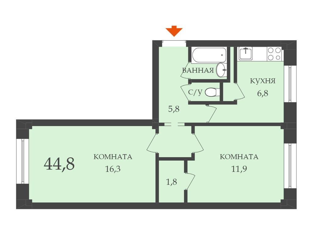 Общая площадь 45 м2