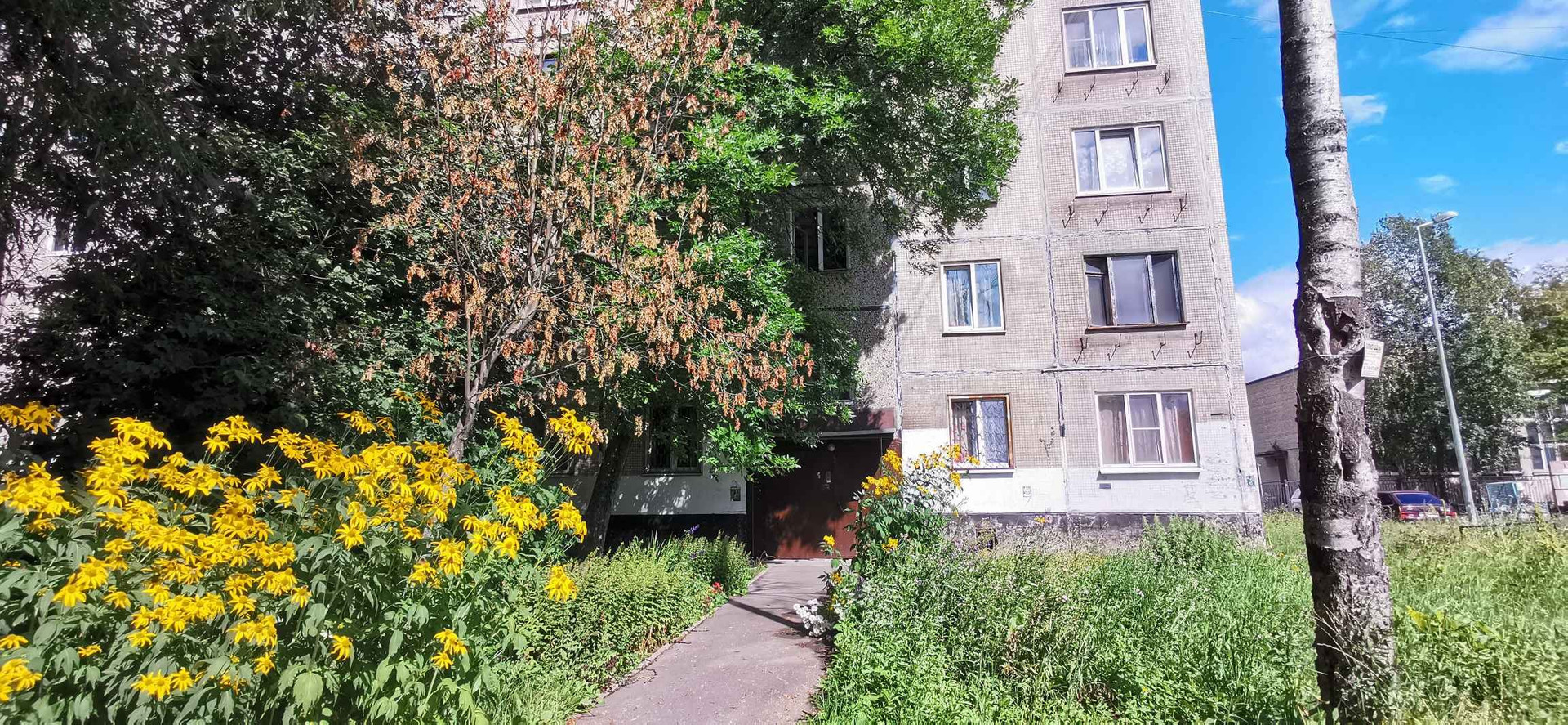 Дом расположен в уютном дворе, который утопает в зелени.