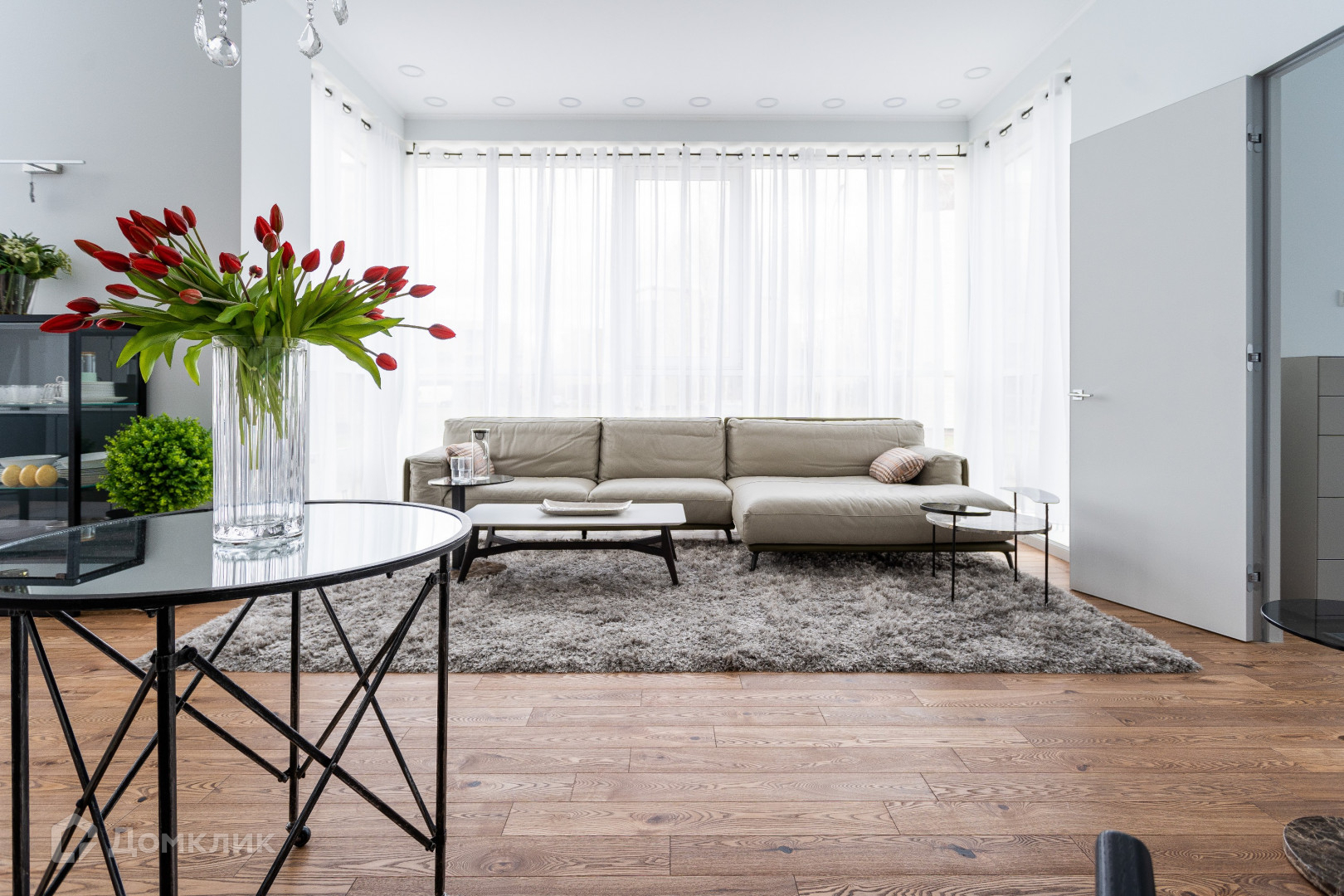 Удобная планировка, потолки - 3,5 м, панорамные окна в квартире много света и простора, дорогостоящие натуральные строительные материалы, мебель и аксессуары европейских фабрик Natuzzi, Caligaris, Ditre Italia, оригиналы картин известных художников, техника Nef, Asko.