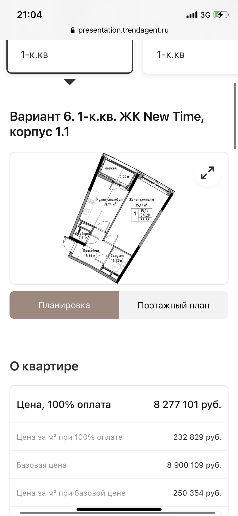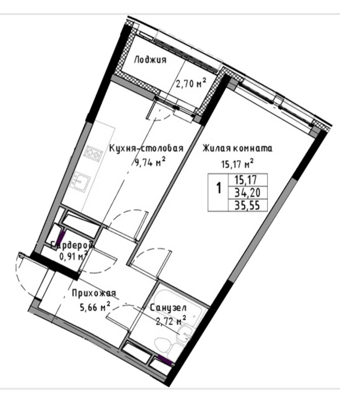 Общая площадь 34.2 м2