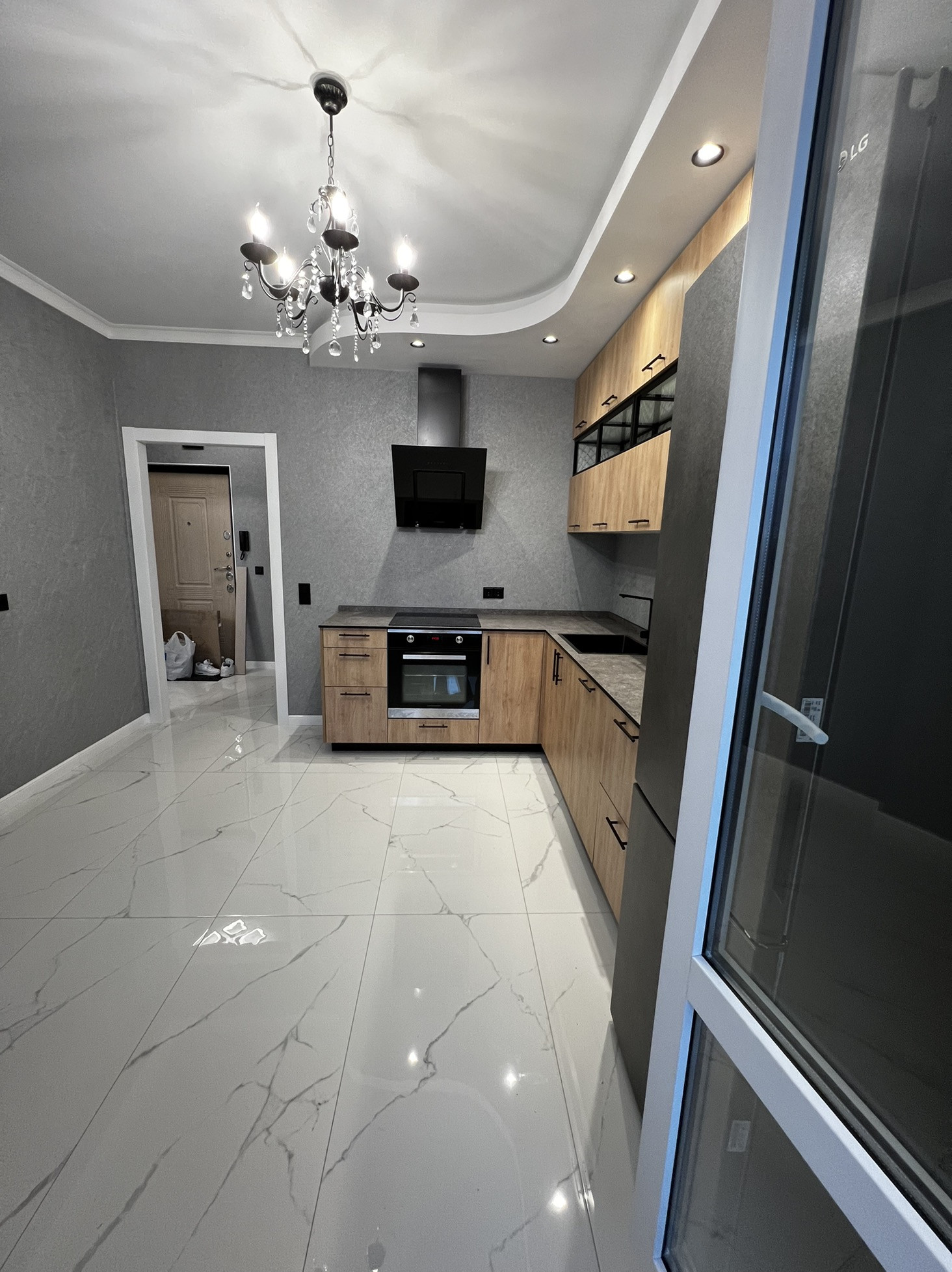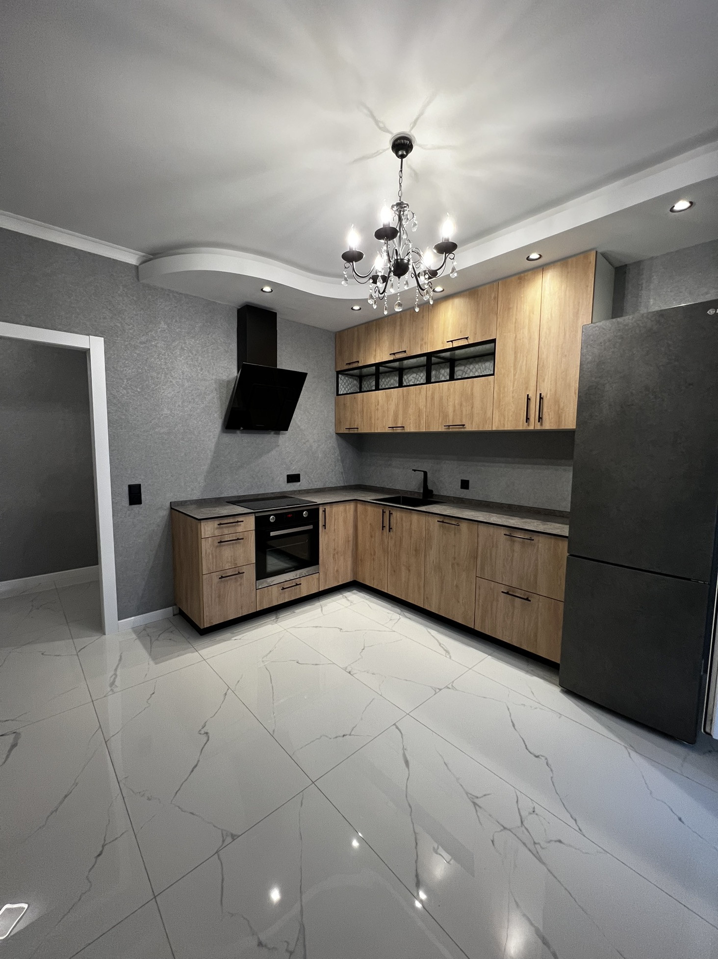 На кухне установлена вся мебель и техника для комфортного проживания -посудомоечная машина ,духовой шкаф ,варочная панель , вытяжка, холодильник !