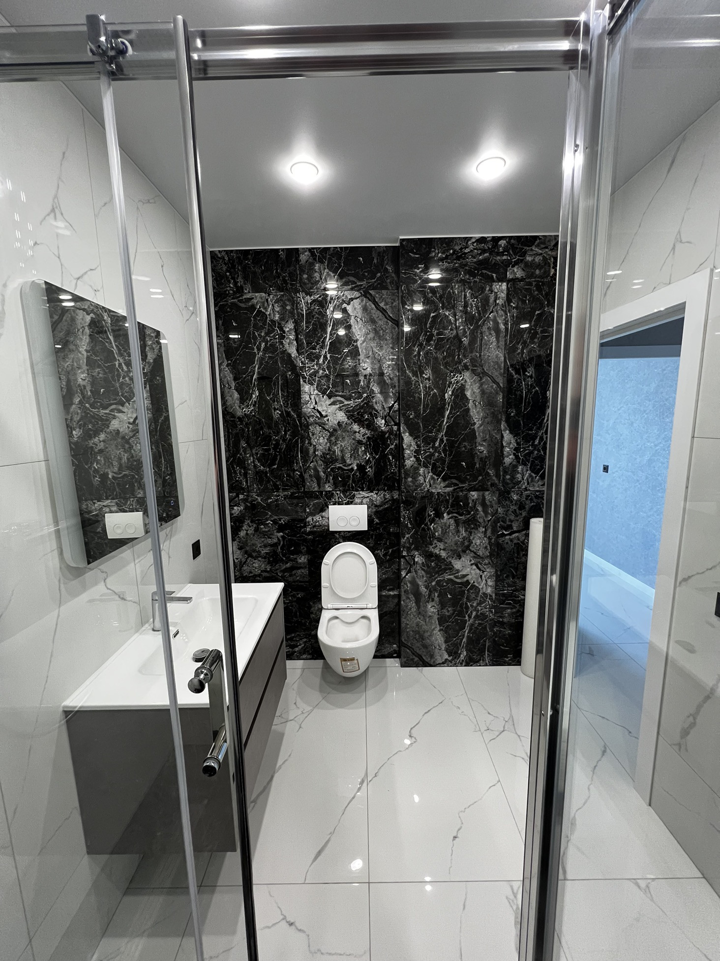 Итальянские обои и испанский керамогранит не стенах и полу