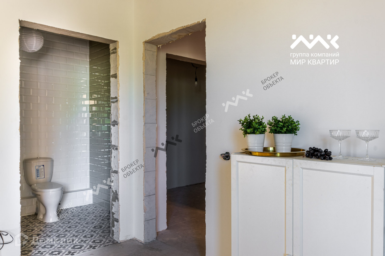 В квартире сделан предчистовой ремонт и полностью завершенный ремонт санузла.