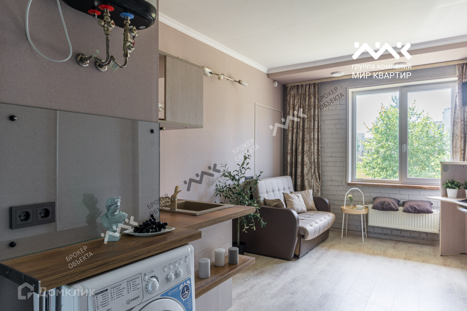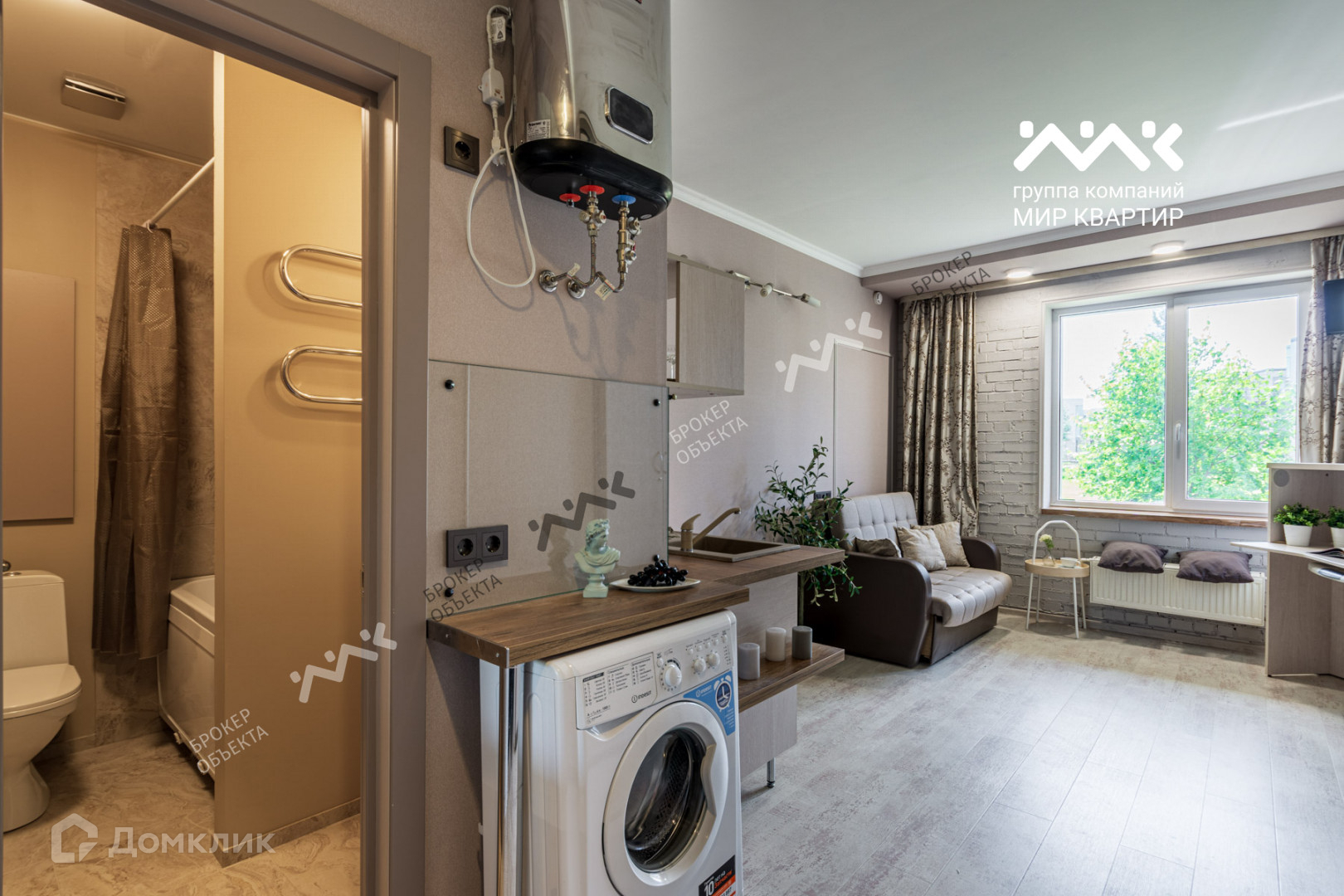Квартира поделена на две отдельные. Первая часть со входом с парадной - комфортная и полностью готовая к проживанию студия. Во вторую часть отдельный вход со стороны своего патио, ремонт сделан, остается лишь оборудовать техникой и мебелью.