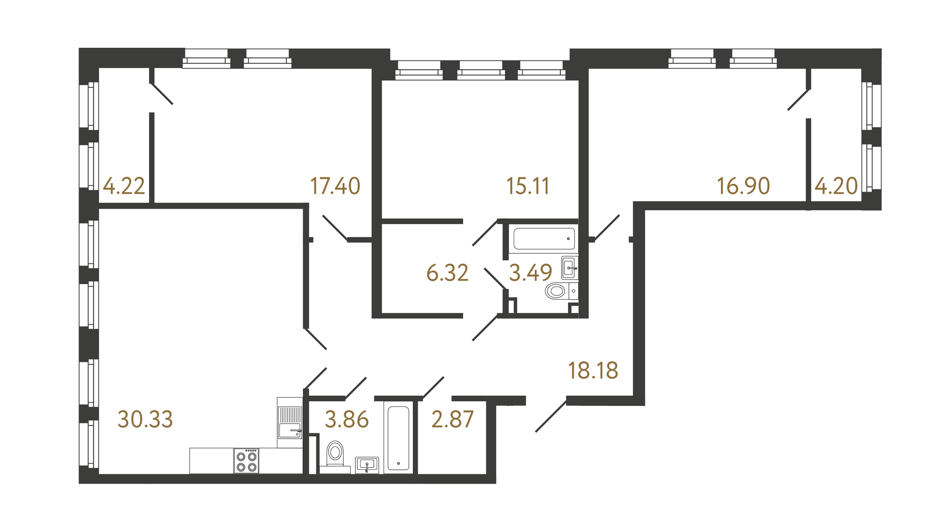 Высота потолков 3 м