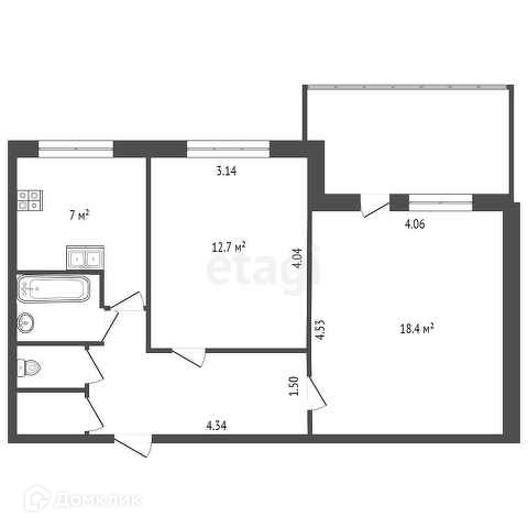 Жилая площадь 31.1 м2