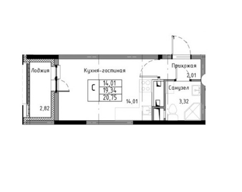 Общая площадь 19.3 м2