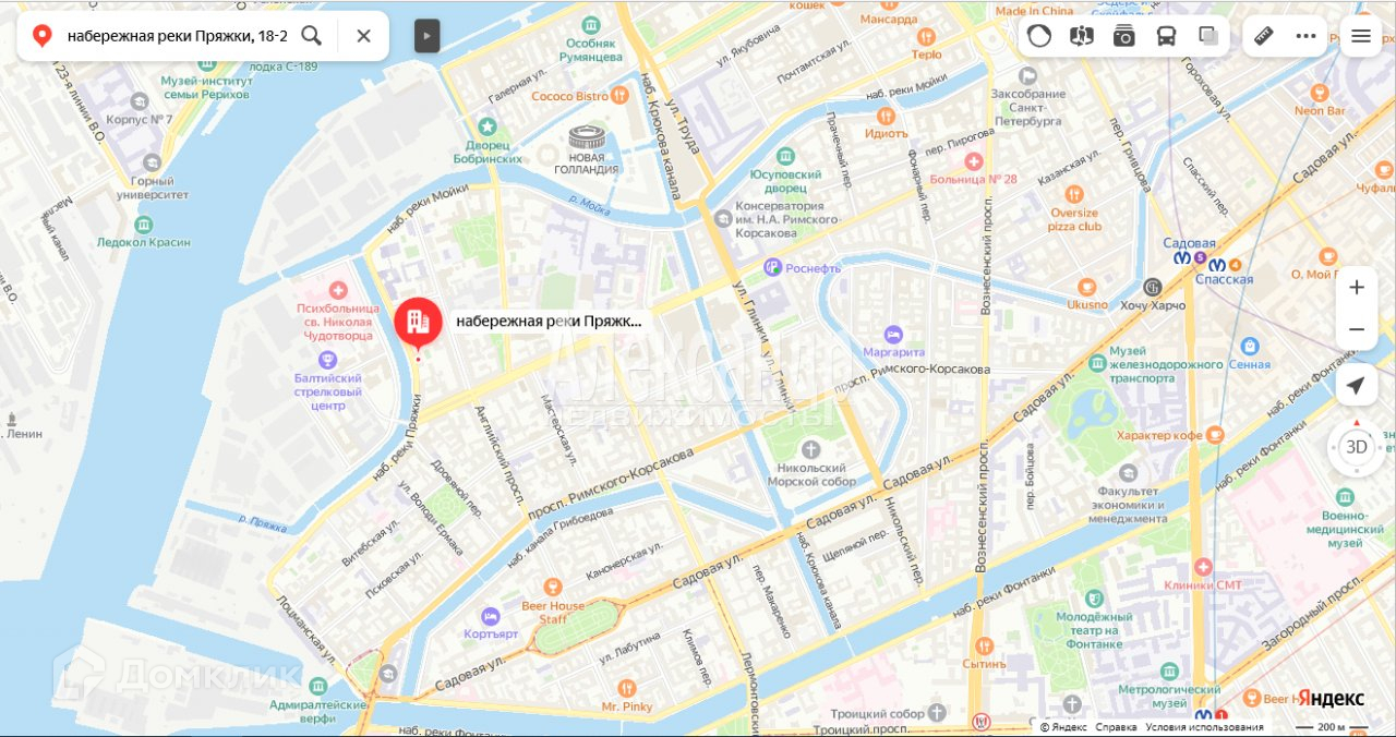 В 20 минутах ходьбы от дома станция метро Садовая.