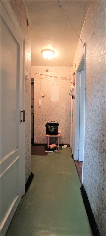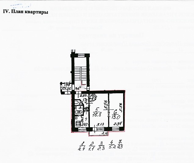 Общая – 43,3, жилая – 29,8 (16,8 + 13,0) кв.м, кухня – 5,2 кв.м. балкон. Комнаты смежные. Горячая вода – газовая колонка, плита – газовая. Очень тихая и теплая квартира, без мебели. Чисто, но требует косметики.