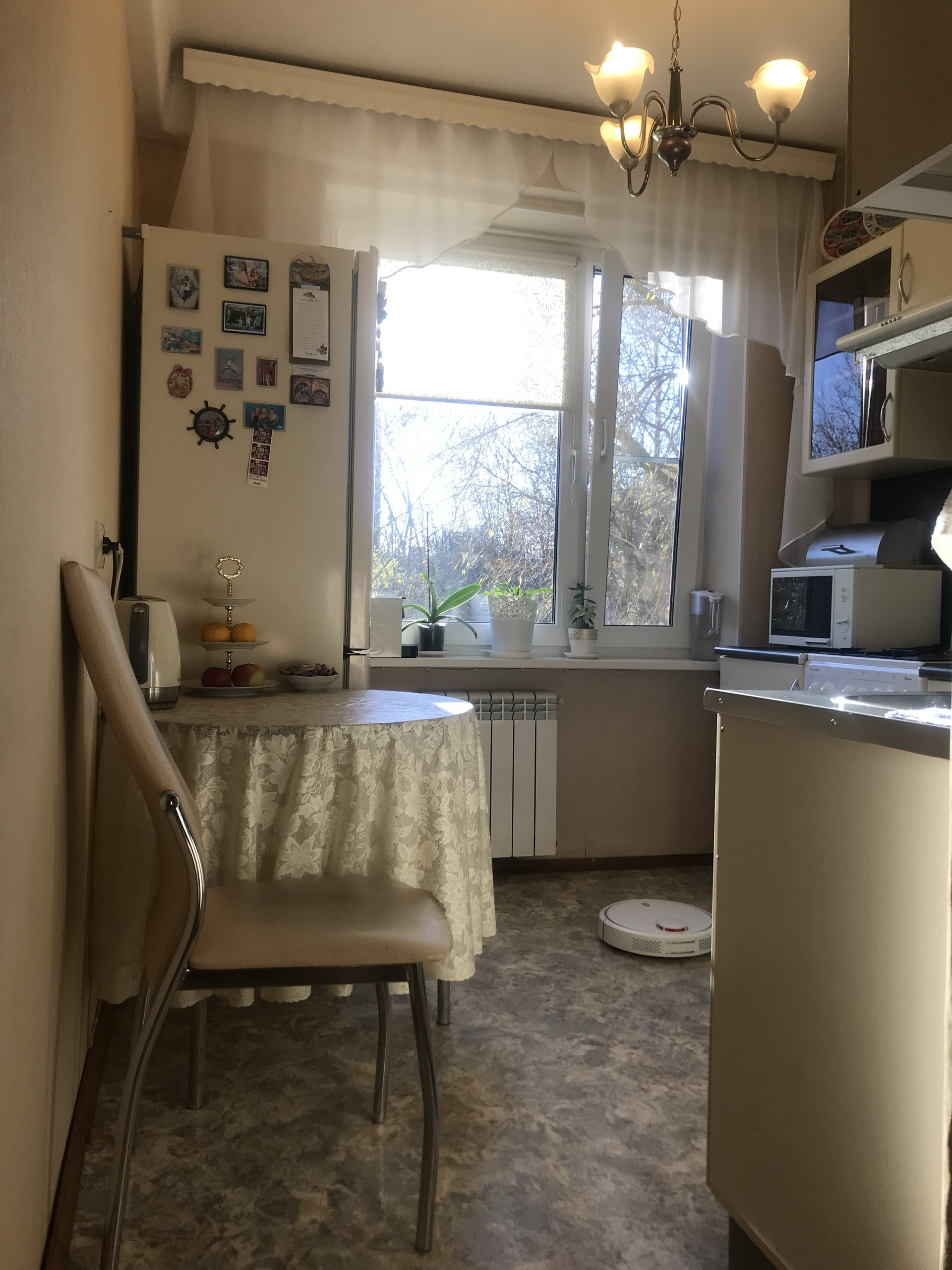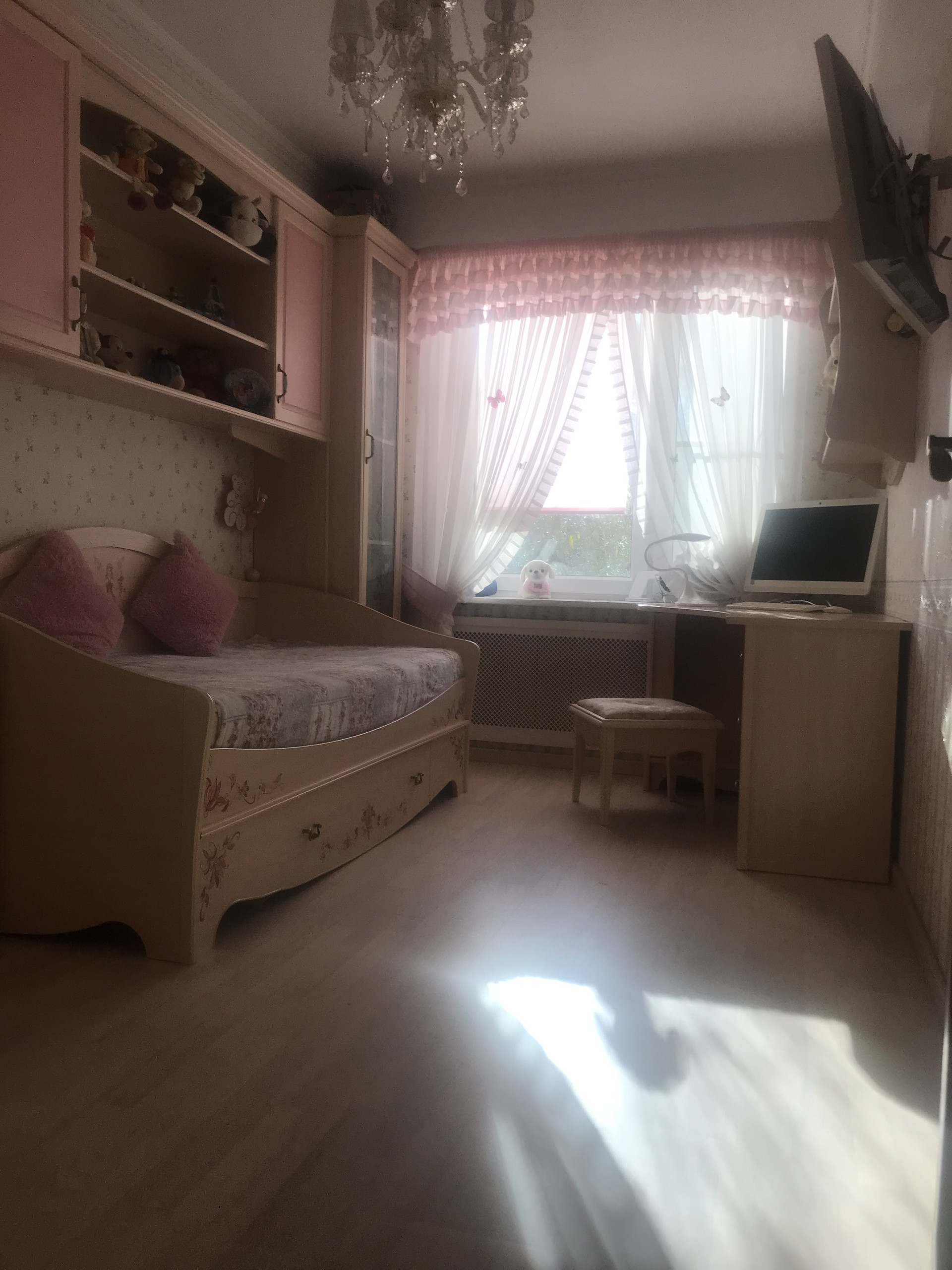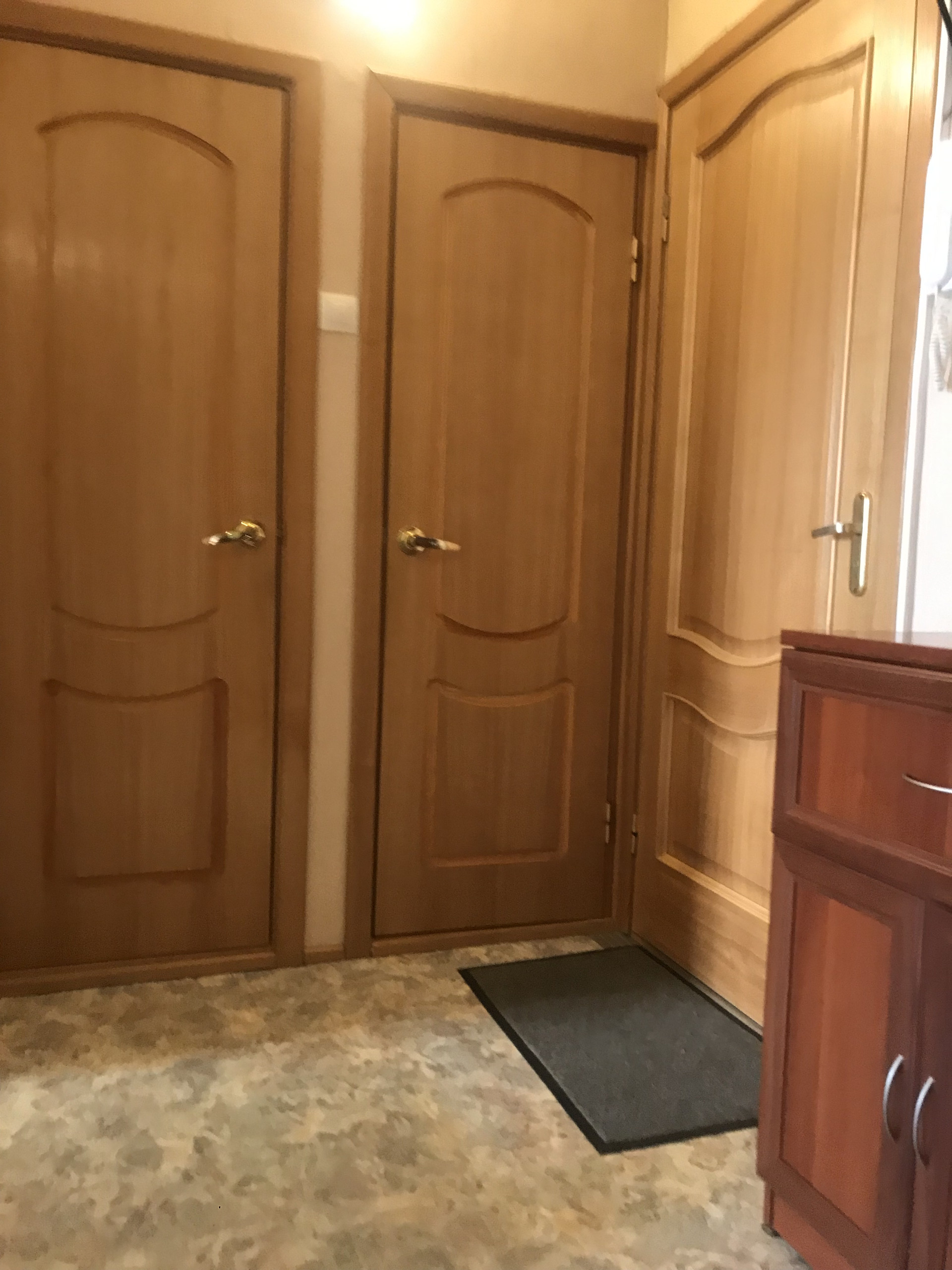 В квартире полностью заменены окна на стеклопакеты, (в большой комнате панорамное окно), новые биметалл радиаторы отопления. В комнатах выровнены стены, стяжка на полу ( паркетная доска ), новая проводка, красивые потолки ( гипсокартон, точечные светильники), итальянские обои, выполнен дизайнерский ремонт.!!! На кухне и в коридоре линолеум. Сан узлы все в кафеле. Есть дополнительная кладовка для стиральной машины. Заменены трубы и установлены счетчики воды. Застекленная лоджия ( выведено электричество и тв антенна). В подъезде мусоропровод, не так давно произведён ремонт подъезда ( установлены стеклопакеты, новый лифт, освещение на этажах с датчиком движения, установлен домофон.ру с камерой видеонаблюдения). В подъезде всегда чисто, соседи очень приятные и хорошие люди.