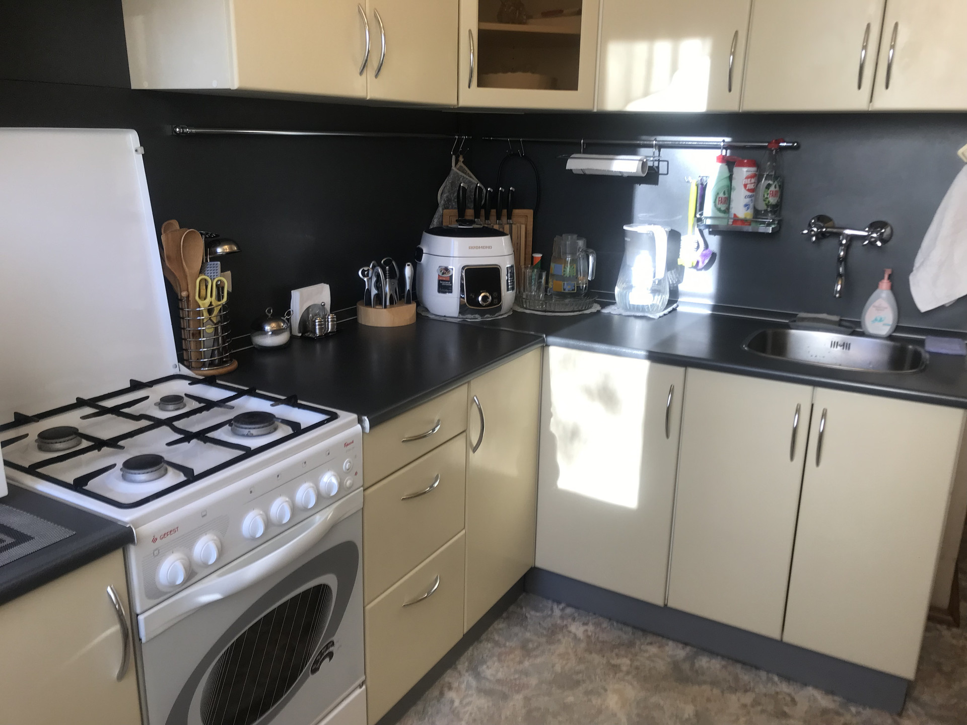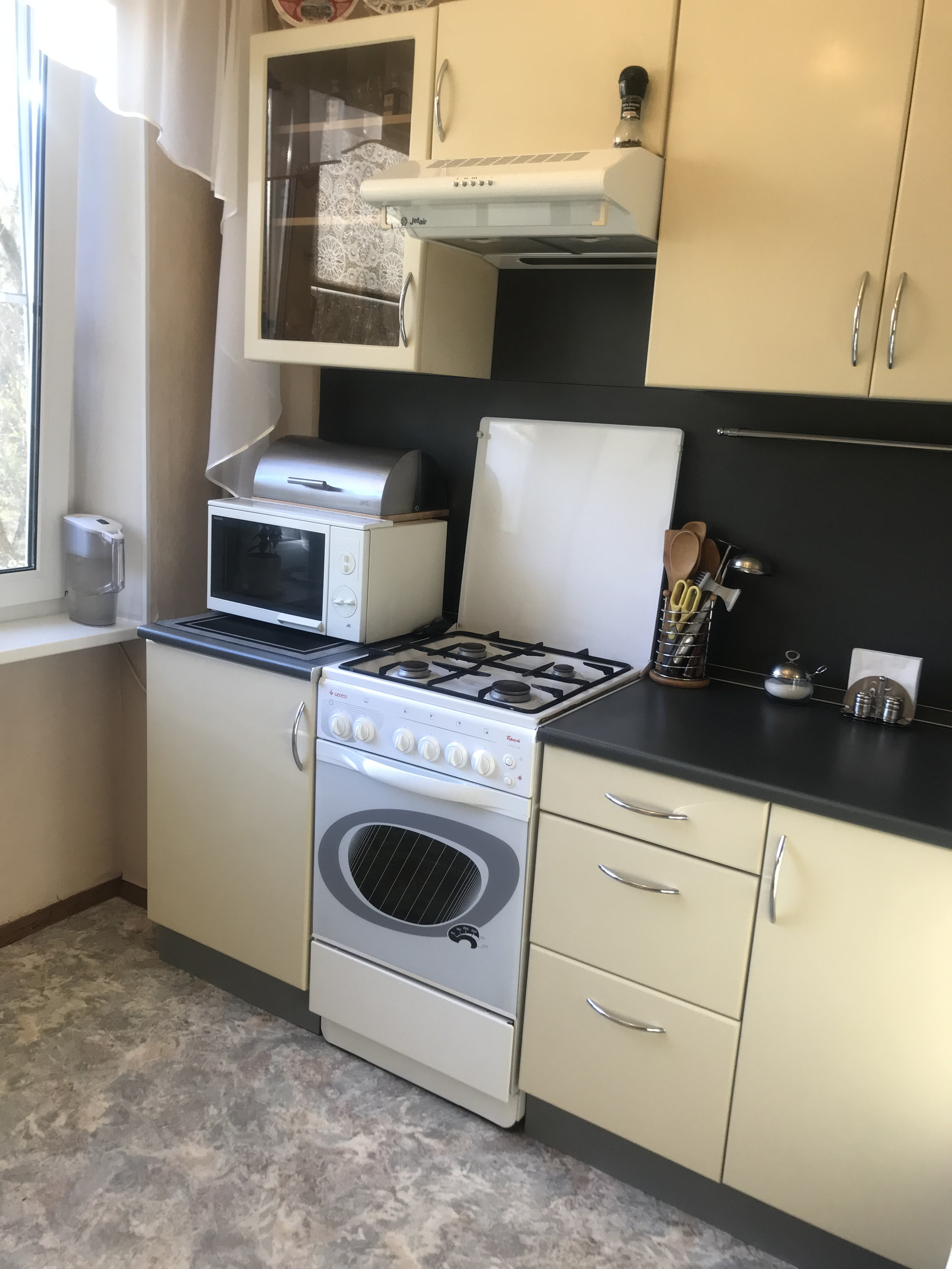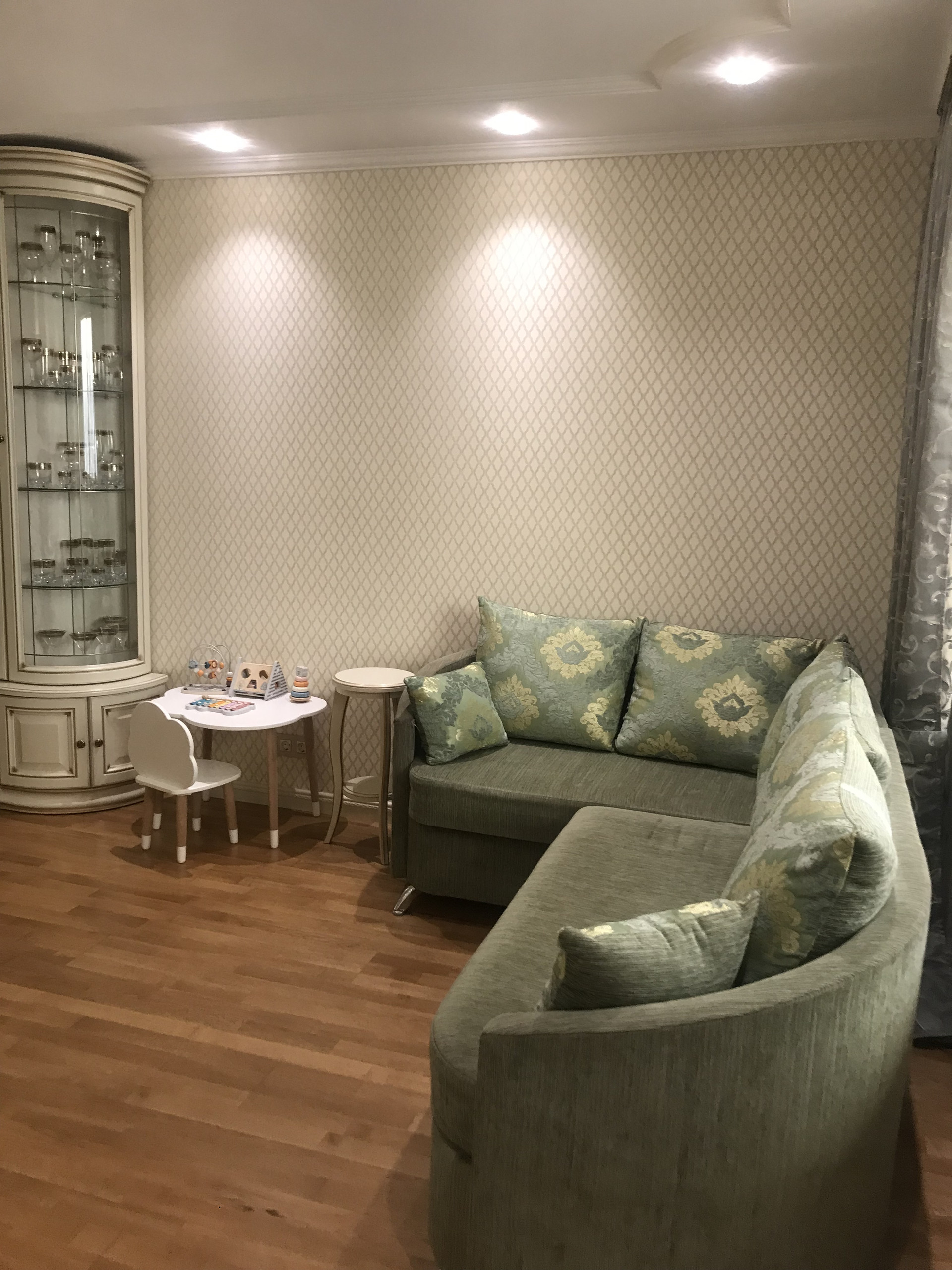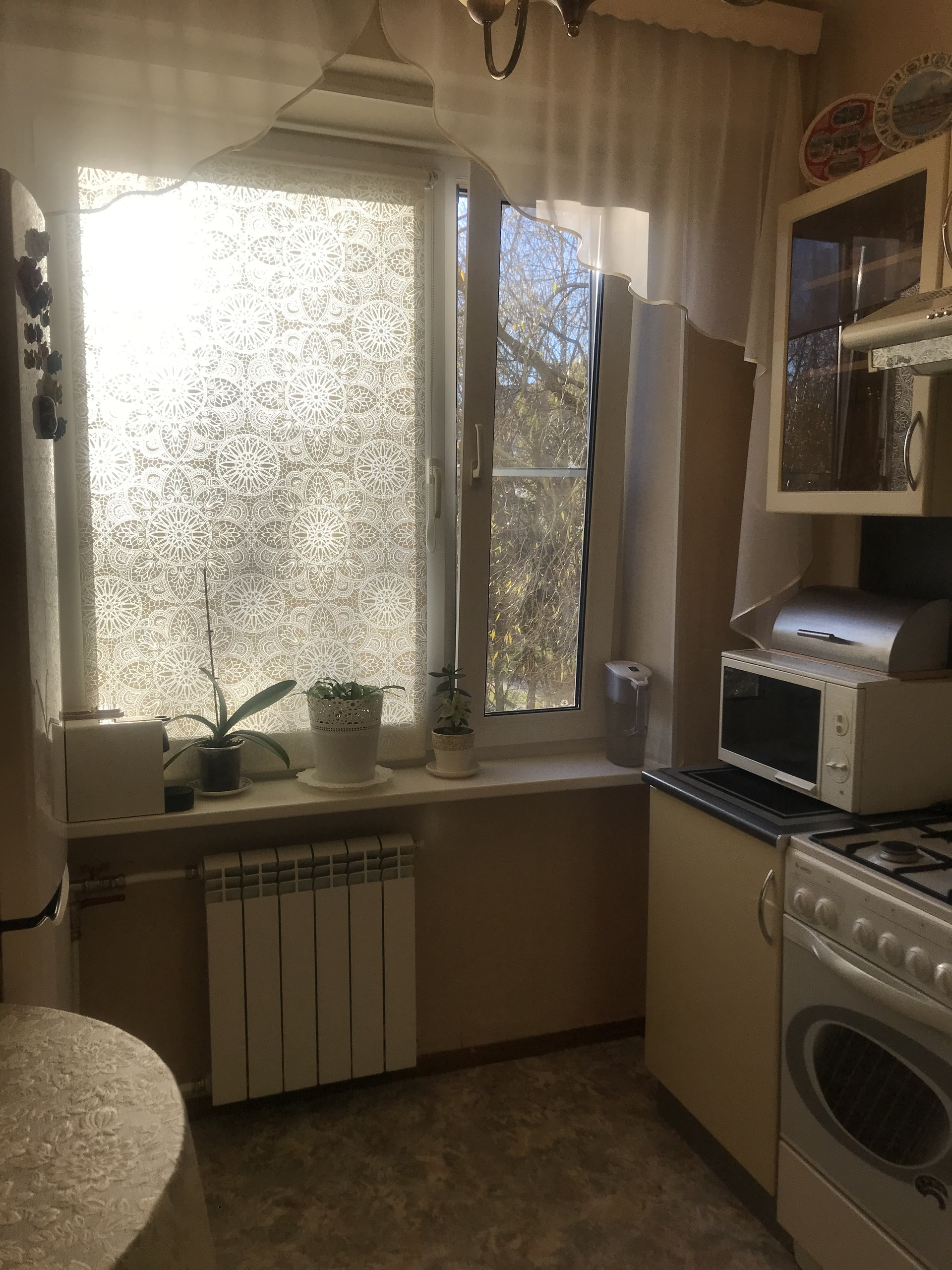 В квартире полностью заменены окна на стеклопакеты, (в большой комнате панорамное окно), новые биметалл радиаторы отопления. В комнатах выровнены стены, стяжка на полу ( паркетная доска ), новая проводка, красивые потолки ( гипсокартон, точечные светильники), итальянские обои, выполнен дизайнерский ремонт.!!! На кухне и в коридоре линолеум. Сан узлы все в кафеле. Есть дополнительная кладовка для стиральной машины. Заменены трубы и установлены счетчики воды. Застекленная лоджия ( выведено электричество и тв антенна). В подъезде мусоропровод, не так давно произведён ремонт подъезда ( установлены стеклопакеты, новый лифт, освещение на этажах с датчиком движения, установлен домофон.ру с камерой видеонаблюдения). В подъезде всегда чисто, соседи очень приятные и хорошие люди.