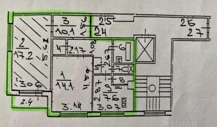 Жилая площадь 31.3 м2
