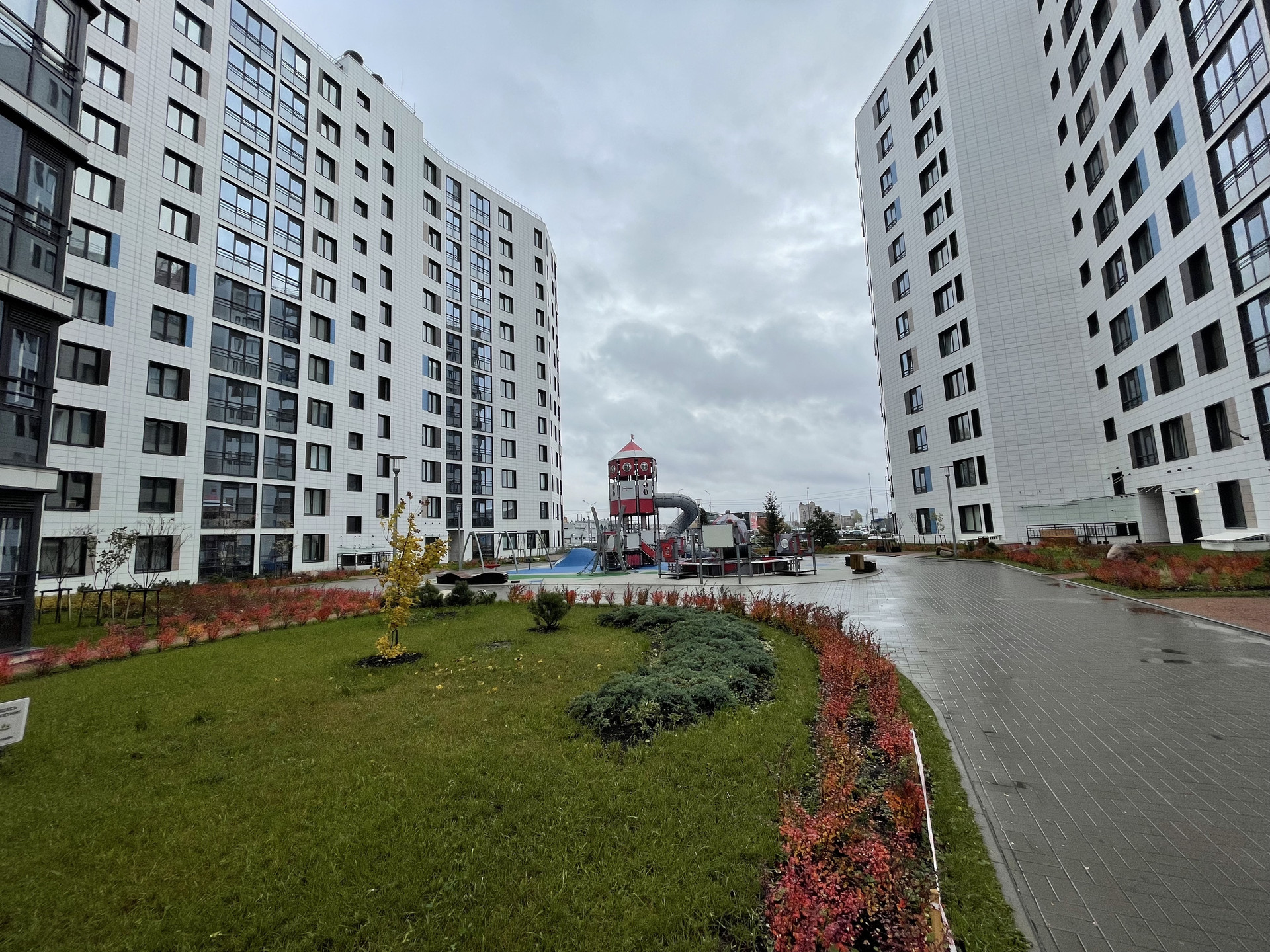 Инфраструктура: В жилом комплексе имеется трехэтажное здание с детским садом на 185 мест и начальной школой на 100 учащихся. На первых этажах домов предусмотрены коммерческие помещения под магазины, аптеки, булочную-пекарню, кафе, офисы и бытовые службы. Во дворе имеется стадион с полем для игровых видов спорта. Внешняя инфраструктура предлагает жителям богатый выбор. Напротив комплекса расположен крупный торгово-развлекательный комплекс «Радуга», где работает более трехсот магазинов, кафе и ресторанов, гипермаркеты «Ашан» и «Оби», кинотеатр «Синема Парк». Рядом есть гипермаркет «Карусель», Петербургский спортивно-концертный комплекс, музей истории России, фитнес-клуб. В двух шагах находятся продуктовые супермаркеты «Дикси», Spar и «Магнит», торгово-развлекательный центр «Рио».