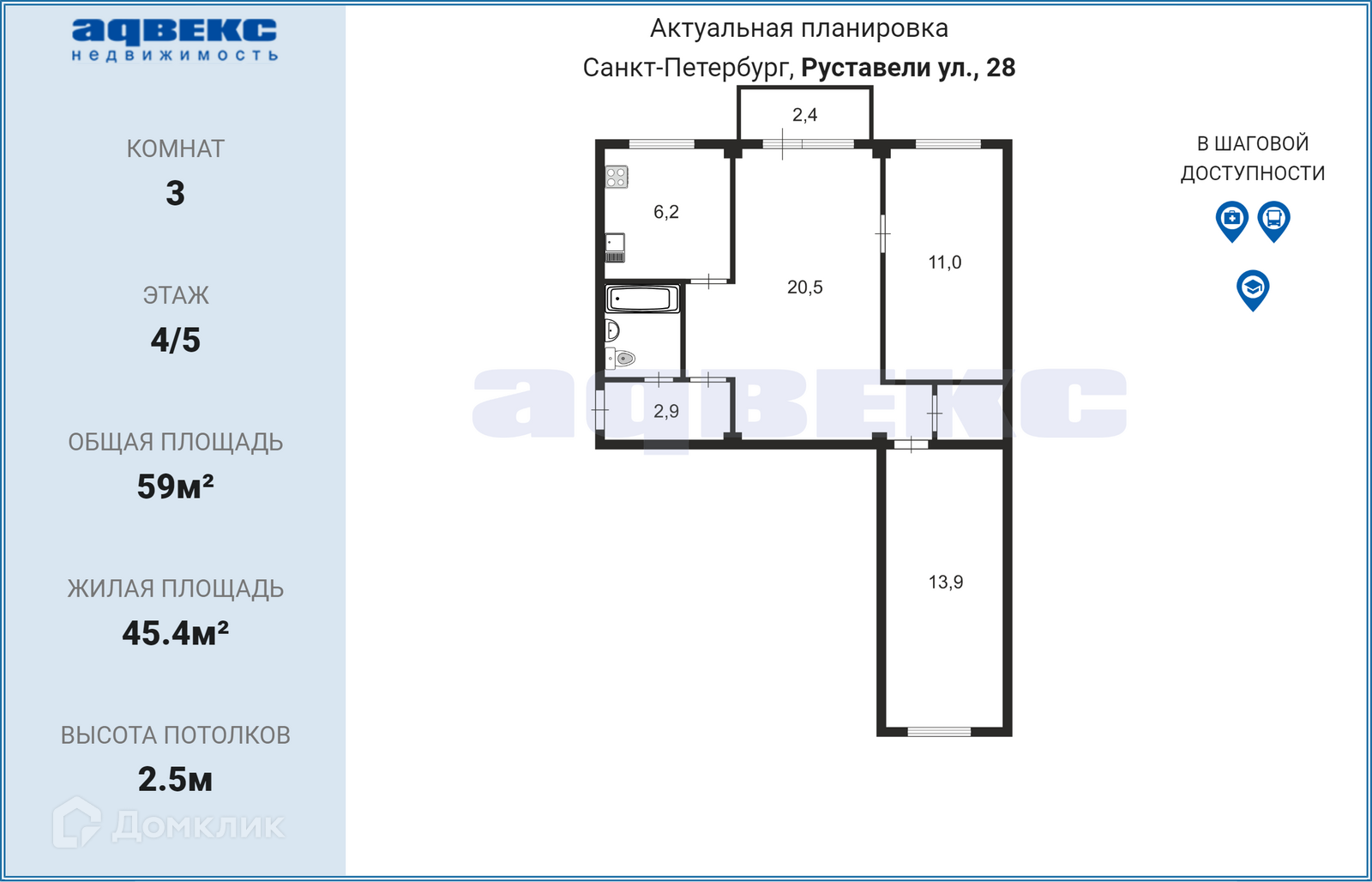 Общая площадь 59 м2